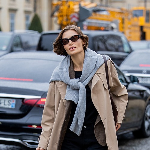 배를 드러낸 트렌치 코트 룩은 어떤가요? 물려 입었거나 오래 입은 듯한 낡음이 전해지는 트렌치 코트에 젠지 애티튜드든, Y2K 무드든, 그 모든 걸 오묘하게 섞어보는 거죠. 어쩌면 트렌치 코트가 할 수 있는 가장 반항적인 젊음의 선언일지도 모르겠습니다.