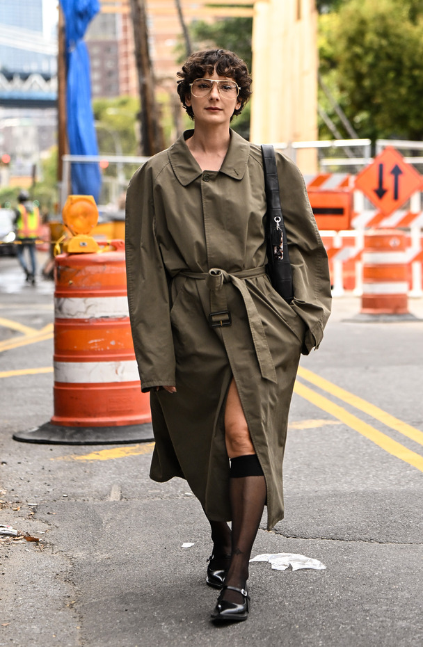 누구나 아는 삼단 공식을 쿨하게 트위스트해 즐길 수도 있습니다. 따로따로 떼어놓고 보면 전형적인 아이템인데 이상하게 젊고 신선해 보이죠? 그 아이러니를 이끌어내는 게 바로 트렌치 코트 연출법이죠. 그레이빛이 도는 베이지 트렌치 코트에 박시한 핏, 너무 빳빳하지 않은 소재로 고른 후 눈을 ‘질끈’ 감고 벨트를 묶어줘야 해요. 이때 양말이라는 작은 터치로 룩에 입체감을 주는 것도 잊지 마세요.