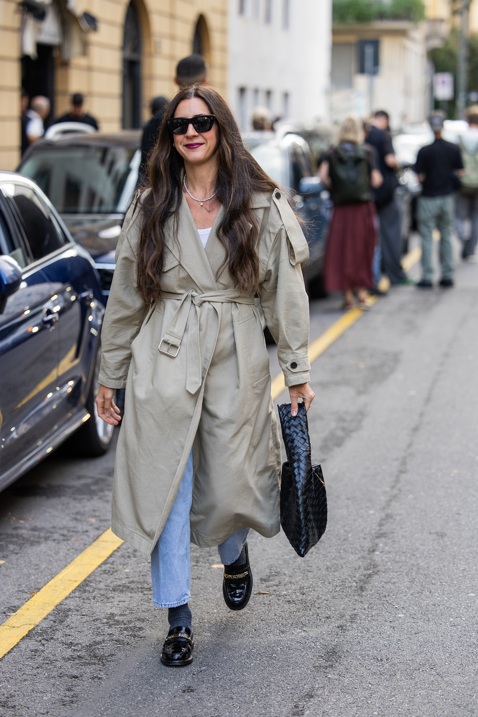 트렌치 코트 + 청바지 + 로퍼