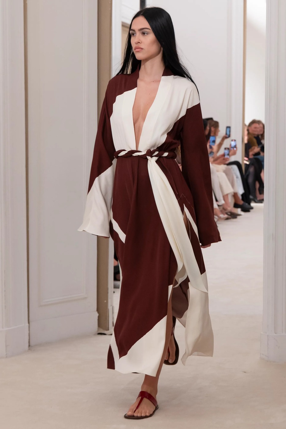 “과잉 노출보다는 프라이버시를 선택하는 것이 가장 낭만적인 태도죠.” 로렌조 세라피니는 삶을 굳이 드러내지 않고 지키려는 여성을 떠올리며 이번 컬렉션을 구상했다고 전했죠. 인스타그램의 ‘좋아요’를 받기 위해서가 아니라 오로지 즐거움을 위해 파티를 여는 여주인공에게 헌정한 컬렉션이라고요. 그가 염두에 둔 절제와 여유는 가볍게 흩날리는 케이프, 나른한 카프탄, 손수건 모양으로 흩날리는 드레스 밑단으로 표현되었습니다. 팔레트는 편안한 미색에서 출발해 깊은 톤으로 가라앉았다가 대담한 레오파드 프린트로 이어졌고요. 포르투니풍의 주름 잡힌 달콤한 드레스는 1970년대 뮤즈 티나 초우(Tina Chow)의 사진이 무드보드에 있었던 이유를 설명했죠. 시대를 초월한 우아함과 여성성이 로렌조의 손을 통해 탄생했습니다.