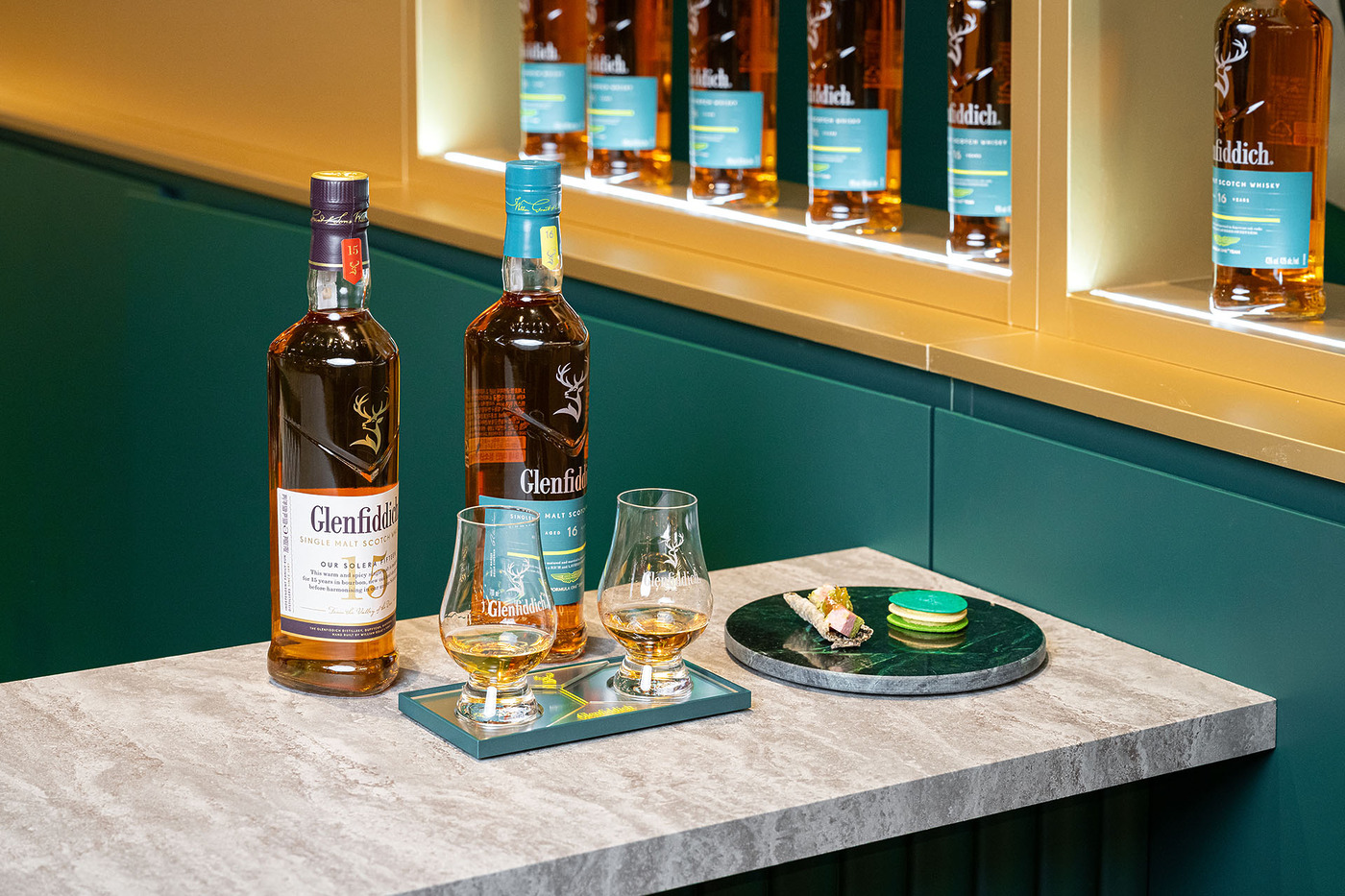 지난 8월, 국내 최초 단독으로 글렌피딕 16년 한정판이 선공개된 팝업 스토어는 강렬한 그린과 메탈릭 실버 톤으로 꾸며, 마치 두 세계관의 교차점에 초대된 듯한 두근거림을 선사했다. 글렌피딕 15년과 16년 한정판을 음식과 함께 페어링하며 비교할 수 있는 테이스팅 존과 글렌피딕의 다양한 라인업을 직접 구매할 수 있는 리테일 존으로 구성된 팝업 스토어에서 매일 일정량만 판매한 글렌피딕 16년 한정판은 빠르게 품절되며 뜨거운 반응을 보였다.