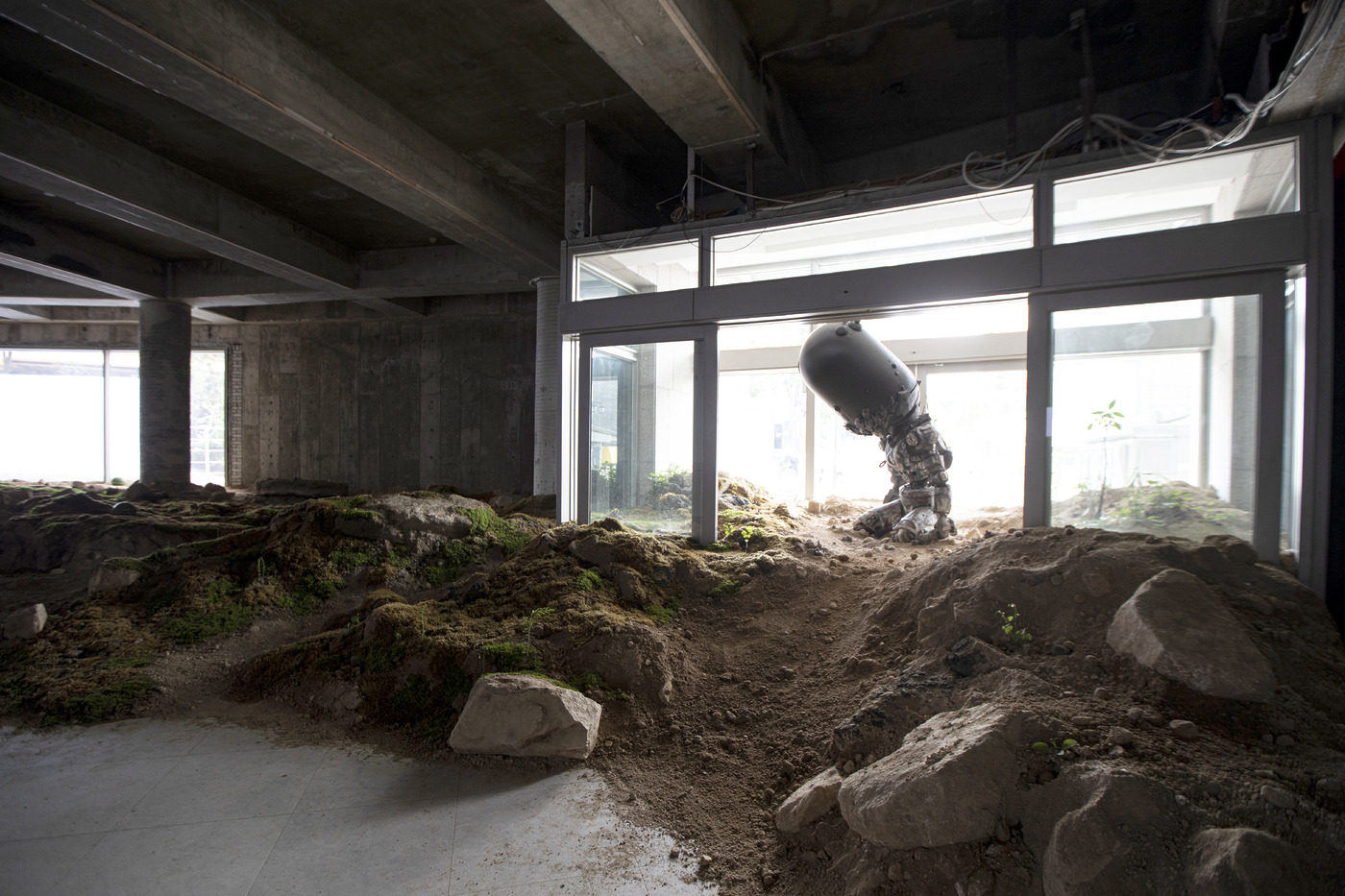 사실 이번 전시는 오픈 전부터 삼청동을 오가는 이들의 시선을 사로잡았습니다. 미술관 입구가 흙으로 막혀 있었기 때문이죠. <아드리안 비야르 로하스: 적군의 언어>전은 미술관 건물을 조각적 생태계로 전환하는 대규모 장소, 환경 특정적 프로젝트를 선보입니다. 우리가 알고 있던 깔끔하고 중립적인 미술관은 모두를 환대하는 공간이지만, 작가는 이곳을 매우 야생적이고 불완전한 공간으로 탈바꿈시킵니다. 그 결과 미술관은 더 이상 보존의 장소가 아니라 비인간과 포스트 휴먼, 돌연변이 같은 존재가 마구 뒤섞인 예측하지 못하는 세상이 되는 거죠. 게다가 이번 전시가 1995년 미술관 옛터에서 처음 열린 전시 <싹> 개최 30주년을 조용히 기념하고 있음을 떠올리면 그때와 지금, 우리가 상상하는 인간의 세상과 비인간의 세상이 어떤 모습인지 비교·대조할 수 있습니다.