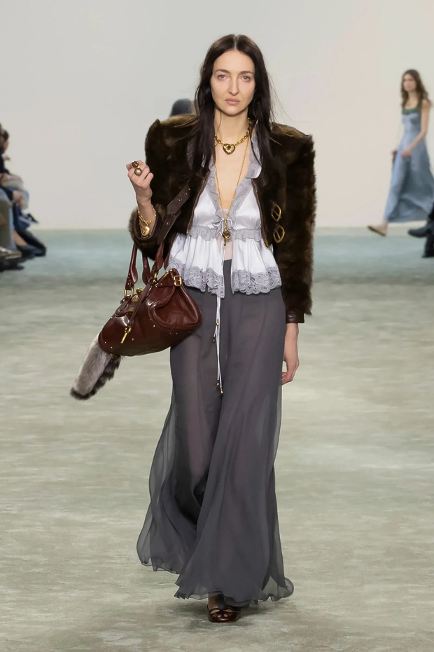 누구도 부인할 수 없는 사실, 란제리 블라우스는 1990년대 패션의 상징이라는 겁니다. 속옷으로 여겨지던 란제리가 어엿한 ‘패션 아이템’으로 등극해 우아함과 품격에 대한 새로운 개념을 제시한 시기가 바로 1990년대였으니까요. 보통 새틴 소재에 레이스와 끈 디테일을 더한 이 블라우스는 ‘유혹’의 의미를 재정의하기도 했습니다. 이번 시즌에는 끌로에의 재해석을 통해 세상에 모습을 드러냈습니다. 여전히 눈에 띄네요.