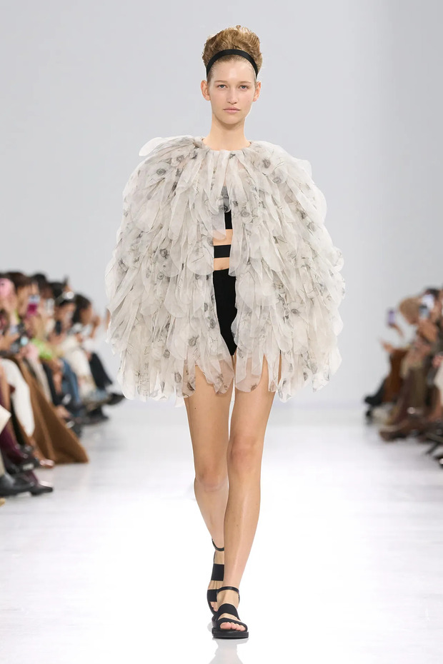 막스마라는 로코코 무드로 컬렉션을 감쌌습니다. 트렌치 코트 어깨와 펜슬 스커트 엉덩이에서 솟아오른 거즈 러플, 귀족들의 도자기에서 영감을 얻은 플로럴 프린트, 꽃잎처럼 겹겹이 쌓인 시폰 스커트가 무대를 장식했습니다. 그러나 이런 디테일은 정말 장식일 뿐, 중심은 아니었습니다. “테마가 본질을 흔들게 해서는 안 됩니다.” 이안 그리피스의 뜻이었죠.