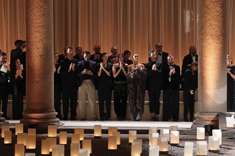 아르마니의 오랜 뮤즈와 친구들이 마지막을 함께했습니다. 케이트 블란쳇, 리차드 기어 같은 배우들부터 나데주 뒤 보스페르튀스(Nadège du Bospertus), 엘다 스카네키아(Elda Scarnecchia) 같은 모델들까지. 아르마니와 오랜 시간 인연을 이어온 이들의 눈빛에서 깊은 울림이 느껴졌죠. 로렌 허튼은 쇼가 끝난 후 이런 말을 남겼습니다. “그는 영원히, 우리가 여기 있는 한 살아 있을 거예요.” 한 시대의 패션사를 함께 써 내려온 그에 대한 그리움이 묻어났죠.