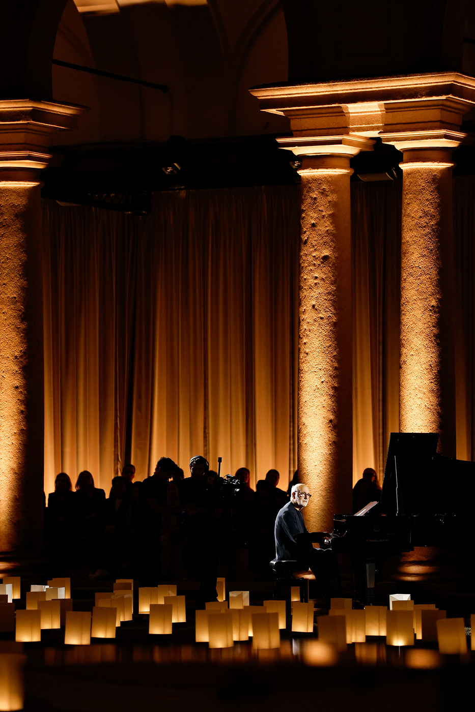 쇼는 밀라노 브레라 미술관(Pinacoteca di Brera)에서 열렸습니다. 저녁 하늘 아래 은은한 조명이 빛나고 루도비코 에이나우디(Ludovico Einaudi)의 피아노 연주가 울려 퍼지는 순간, 이미 무대는 헌정하는 공간이 되었습니다. 이번 컬렉션의 제목은 ‘판텔레리아 밀라노(Pantelleria Milano)’. 아르마니가 사랑해 마지않았던 지중해의 섬 판텔레리아와 그가 평생 일해온 도시 밀라노에 바친 헌사였죠.