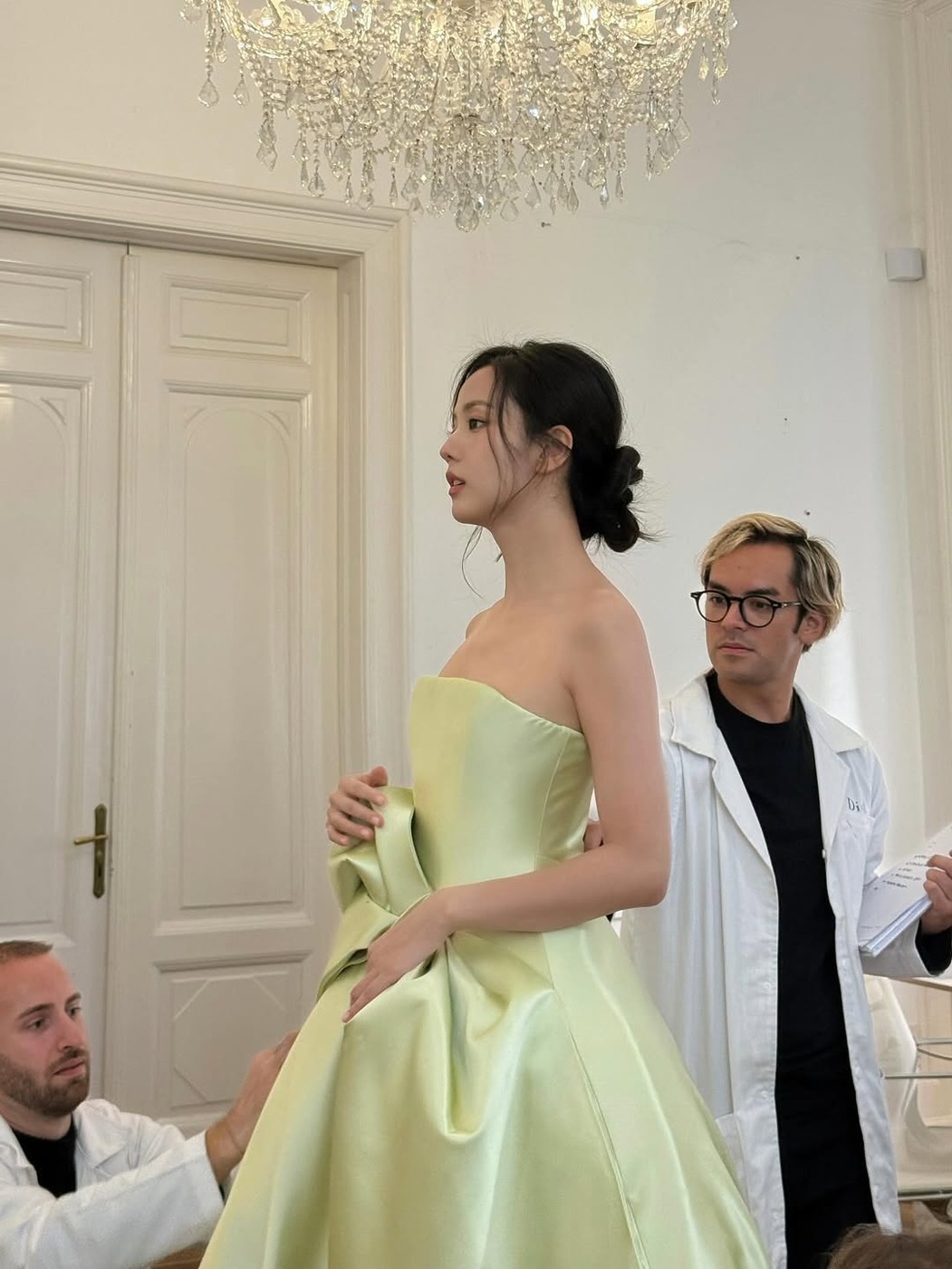 디올 하우스의 아이콘다운 지수는 우아함을 택했습니다. 머리에 웨이브를 넣어 부드러운 곡선을 만든 뒤, 그 흐름을 살려 느슨하게 묶었죠. 핵심은 옆머리입니다. 한쪽은 숱을 넉넉히 내려 얼굴선을 따라 흐르도록 하고, 다른 쪽은 잔머리만 몇 가닥 흘러내리게 두었습니다. 번도 완벽히 둥근 모양이 아니라 삐죽삐죽한 결을 살려 자연스러움을 강조했죠. 덕분에 단정하면서도 여유 있는 무드가 완성됐습니다. 집에서 따라 해봤는데 디테일이 아쉽다면, 미용실의 도움을 받아보세요. ‘묶음 머리를 자주 하는데 옆머리와 잔머리를 자연스럽게 내고 싶다’라고 구체적으로 말하는 겁니다. 스타일리스트가 마지막에 원하는 디테일을 섬세하게 다듬어줄 거예요.