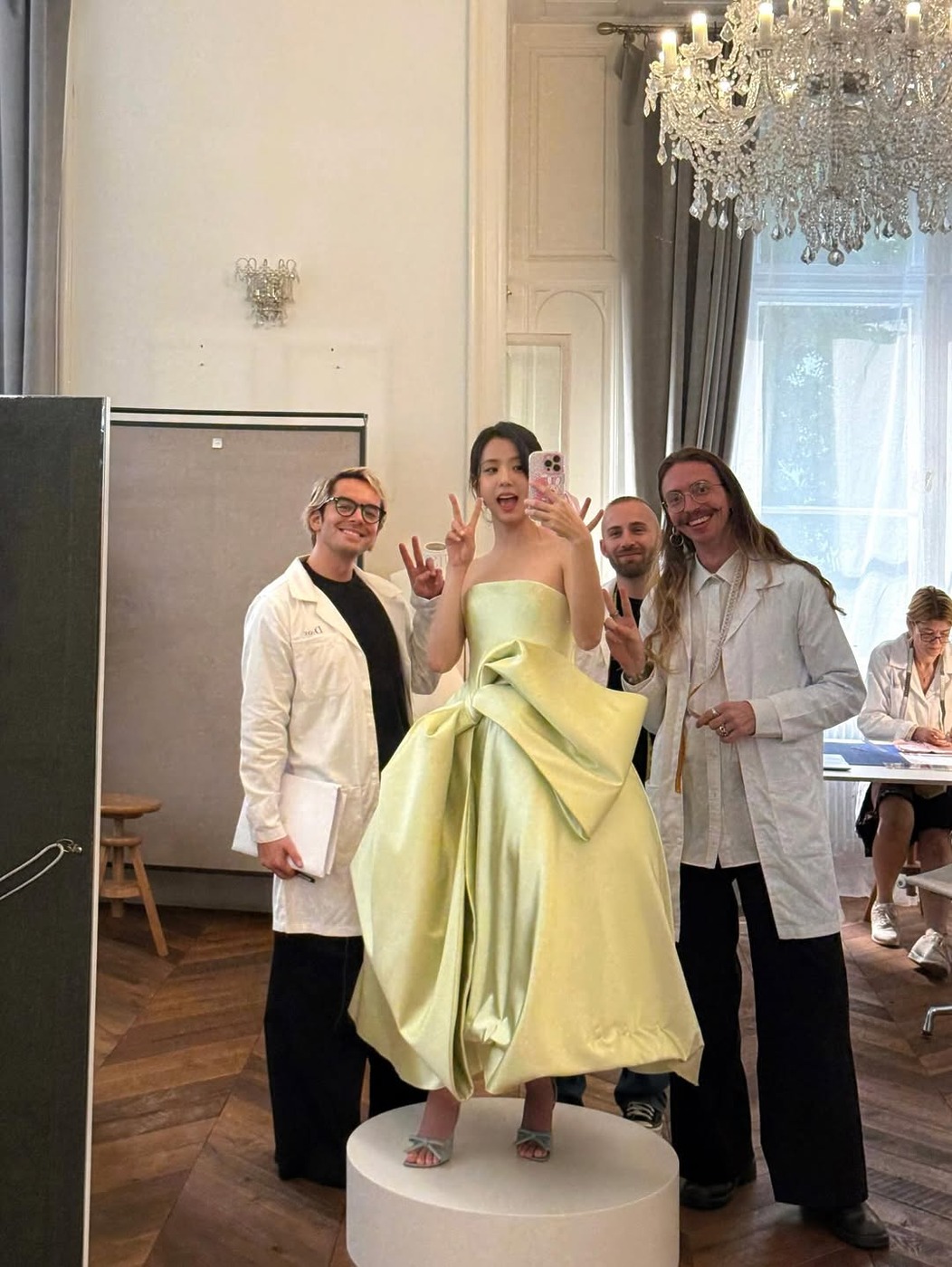 밤의 에펠탑 앞에서 펼쳐진 생 로랑 쇼는 고전적인 낭만이 짙게 배어 나왔습니다. 로제는 쇼의 무드에 맞게, 낭만적이면서도 반전 매력이 있는 헤어스타일을 선보였는데요. 정면에서 보면 하이틴 영화 주인공 같은 경쾌한 하이 포니테일처럼 보이지만, 뒤에서 보면 뒤 가마를 사선으로 탄 뒤 한쪽은 말아 올려 볼륨 있게 표현하고 다른 한쪽은 바짝 묶었죠. 재클린 케네디와 오드리 헵번이 즐겨 했던 푸프 스타일로 클래식한 분위기를 풍겼습니다. 앞에서 보면 단출한 슬립 점프수트지만, 뒤돌면 길고 풍성하게 떨어지는 리본 트레인과 완벽하게 어우러졌죠.