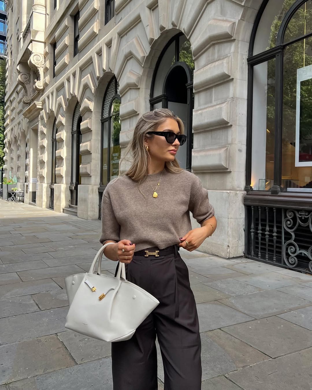 뜬금없어 보이지만, 최근 스트리트 스타일 사진을 들여다보면 니트 티셔츠가 왜 레이어링의 구원투수인지 금세 이해가 갈 겁니다. 평범한 면 티셔츠를 입기에는 뭔가 재미가 없다고 느껴질 때, 룩에 단숨에 품격을 더하고 싶을 때 더할 나위 없이 좋은 아이템이죠. 루스한 데님에 툭 걸쳐도 좋고, 펜슬 스커트에 넣어 입으면 한층 단정해집니다. 테일러드 팬츠에 쏙 넣어 입으면 출근 룩으로도 믿음직스럽고요. 두꺼운 니트를 꺼내기엔 아직 이른 딱 지금 날씨에 특히 유용하고, 초겨울엔 크루넥 니트를 어깨에 걸치거나 위에 겹쳐 입어도 부담스럽지 않습니다. 두 겹의 캐시미어만큼 호사스러운 기분을 주는 건 없을 거예요. 무엇보다 반팔이어서 레이어링했을 때 부해 보이지 않는 것도 최고의 장점으로 꼽을 수 있죠.