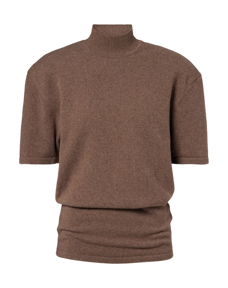 이번 가을 제 위시 리스트엔 초콜릿 브라운 컬러의 니트 티셔츠가 있습니다. 100% 메리노 울 소재로 골라 스커트를 톤 온 톤으로 매치하는 상상을 하죠. 좀 더 박시한 실루엣을 원한다면 스코틀랜드산 램스 울 소재의 오버사이즈 티셔츠도 고려해볼 만합니다. 미니멀리스트의 강자, 코스는 이 카테고리를 적극적으로 밀어붙이고 있는데요. 앤아더스토리의 스트라이프 니트 티셔츠도 플리츠 미니스커트와 매치했을 때 특히 눈길을 끄는 대담한 버전입니다.