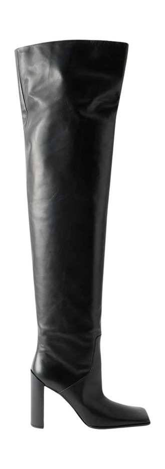 롱부츠를 지칭할 때 흔히 떠오르는 그 슈즈! 가장 인기 있는 무릎 높이의 니 하이 부츠입니다. 세련된 검은색 레더를 선택하든, 에나멜이든, 2025년 트렌드 소재인 스웨이드 건 클래식의 값을 하죠. 스커트, 드레스, 복서 팬츠와 버뮤다 팬츠까지 어울리지 않는 것을 찾기가 어려운 기특한 슈즈니까요. 요즘처럼 다양한 부츠가 나와 경쟁을 벌일 때, 기본 아이템을 들여 놓는 게 가장 똑똑한 소비이기도 하고요. 내년부터는 본격 미니의 시대가 온다고 하니 다리 가리기용으로 장만해 두기에도 적합하죠!
