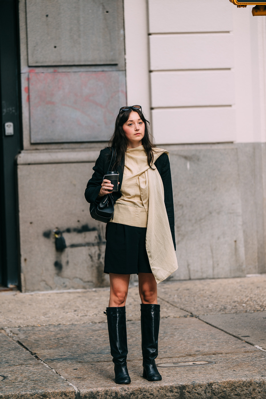 현재 가장 트렌디한 부츠를 고르라면, 허벅지를 타고 올라오는 싸이 하이 부츠입니다. 10년 전처럼 타이트하지 않고 허벅지가 낙낙하거나 슬라우치 핏 스타일로 다시 인기를 몰고 있죠. 신기만 하면 어떤 옷이든 극적인 무드를 만드니 호불호가 있지만, 최근 경향을 보니 꼭 그런것만은 아닙니다. 미니스커트나 청바지 위로 신어 부츠의 특성을 드러내는 것이 일반적이었다면, 스커트 안으로 몰래 숨기는 이들이 많아졌죠. 대신 스커트 밑으로 흘러내리는 듯한 뉘앙스만 보이도록 하는거죠. 여유로우면서도 미니멀 룩에는 질감 만으로도 세련된 멋이 생깁니다.