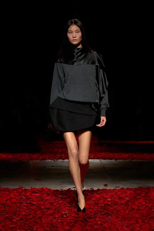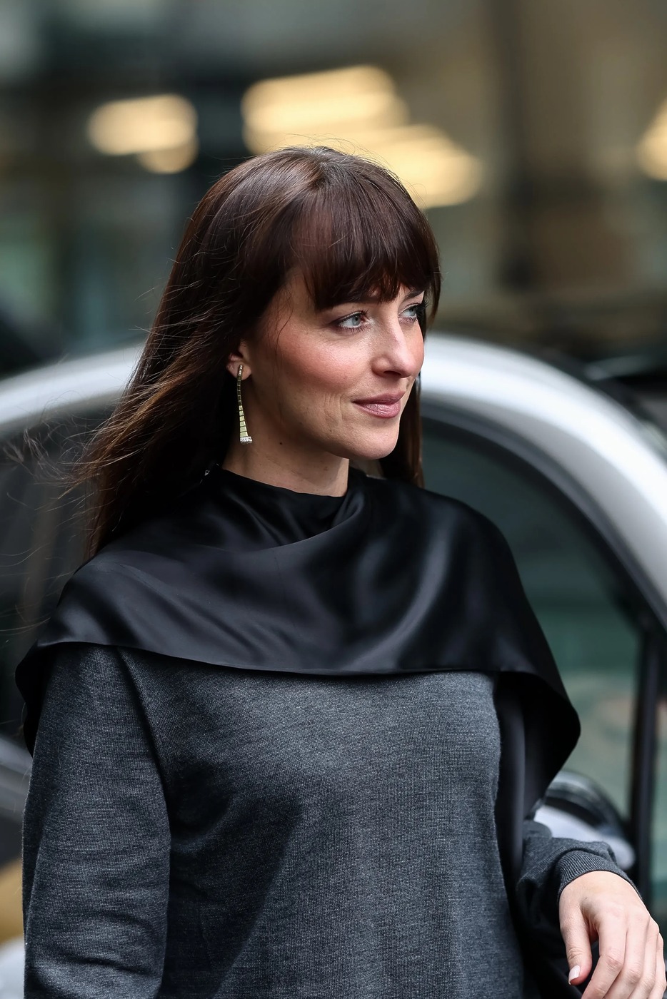 다코타 존슨과 켄달 제너가 그 예를 보여줍니다. 미니멀 대표 주자들이 가장 먼저 케이프에 손을 댔으니까요. 먼저 다코타 존슨은 취리히영화제 참석해 본보기가 되었습니다. 페라가모 2025 가을/겨울 컬렉션 룩을 입고 무대에 나타났죠. 스틸 그레이 컬러 스웨터에 부드러운 소재의 블랙 실크 케이프를 매치하고, 블랙 미니스커트를 매치했습니다. 런웨이와 다른 점이 있다면 시스루 블랙 타이츠에 반짝이는 블랙 니하이 부츠를 매치한 거죠. 청키한 플랫폼이 특징인 생 로랑 부츠는 그렇지 않아도 긴 다리를 더 길게 만들었고, 룩에서 블랙이 차지하는 비중이 커지면서 심플하고 미니멀한 무드가 짙어졌죠. 주얼리도 실버 이어링으로 간단하게 마무리했고요.