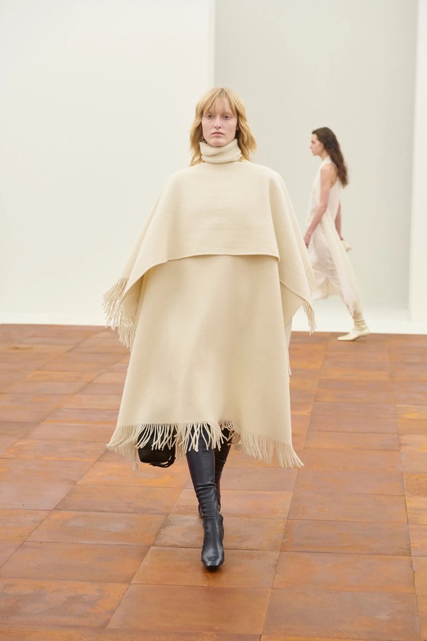케이프, 그러니까 망토를 입었던 게 언제였을까요. 기억을 더듬자면 카디건과 같이 왔고, 카디건과 같이 내팽개친 듯합니다. 2000년대 중반에는 카디건 길이가 짧아져서 망토가 되는 무드였거든요. 단추가 있는 케이프 코트나, 엉덩이를 가리는 하프 코트에 팔만 나와 있는 형태죠. 부츠컷 청바지에 매치하거나 미니스커트에 부츠를 신어 사랑스러운 무드가 풍겼고요. 다행이라고 해야 할까요? 올가을에 돌아온 케이프는 미니멀하고 고아한 멋이 흐릅니다.