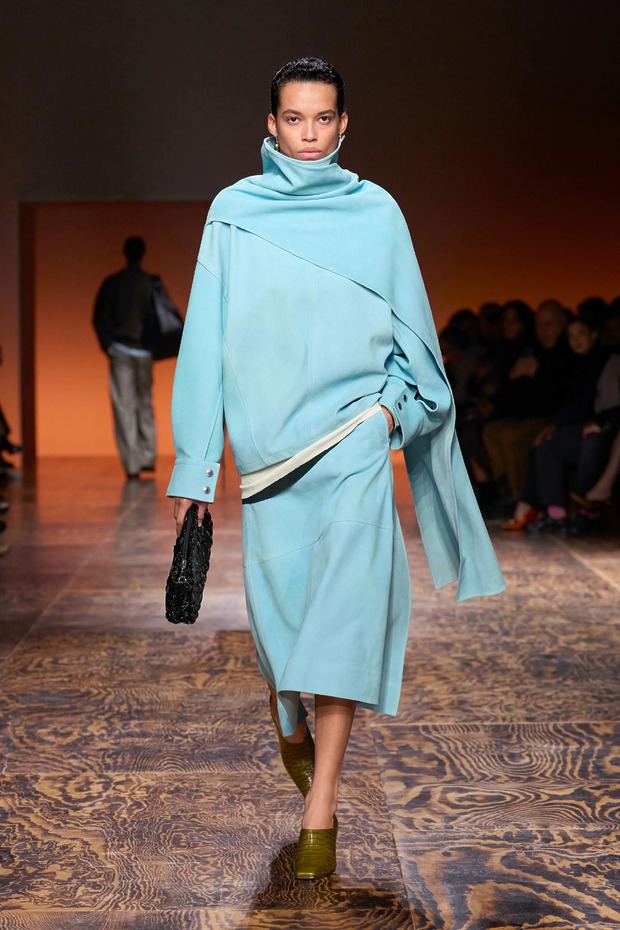 케이프는 지난해부터 유행할 기색을 보였습니다. 토템의 스카프 코트가 유행하면서 이를 변형한 스톨, 판초 등 다양한 스타일이 등장했죠. 이번 시즌에는 훨씬 폭넓어졌습니다. 보테가 베네타, 토템, 알투자라, 버버리 등 다양한 브랜드에서 몸에 두르는 코트를 선보였죠. 몸을 따라 유연하게 흘러내리는 것이 특징인 성숙한 스타일로요.