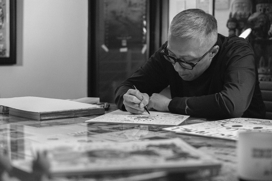 영국 대표 포토그래퍼, 크레이그 맥딘은 ‘모터사이클 재킷’을 내놓았습니다. 자동차 정비사로 훈련받은 그의 이력이 느껴지는 순간이었죠. 그는 “제가 사랑하는 가장 뛰어나고 시대를 초월하는 요소를 반영한 재킷을 디자인하는 것이 꿈이었습니다”라며 “1950년대 모터사이클 문화의 정수를 담아내면서, 그것이 시간이 흐르며 발전해온 과정을 보여주어 시대를 초월하면서도 현대적으로 느껴지는 재킷을 만들고자 했습니다”라고 이번 컬렉션의 취지를 밝혔죠. 블랙 레더 재킷에는 노치트 라펠, 프레스 스터드, 소매 상단의 퀼팅 패널 등 클래식한 바이커 재킷의 디테일을 담았습니다. 무엇보다 맥딘의 사진을 프린트한 안감은 나만 아는 기쁨을 느끼기에 제격이죠.