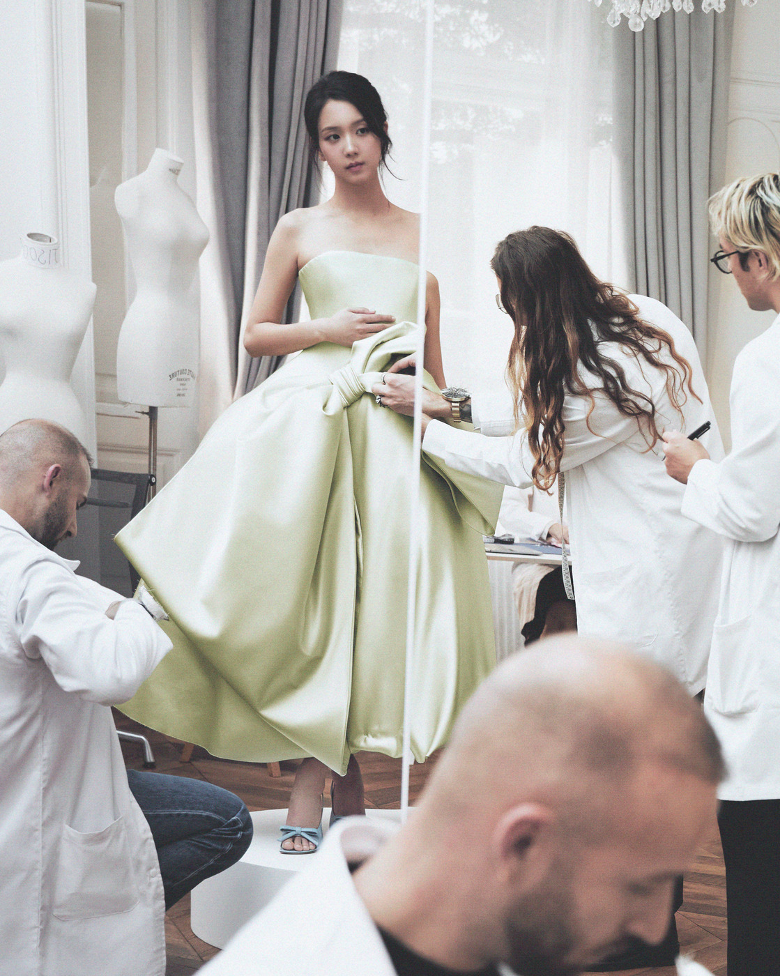 사실 이날 지수의 룩은 의외의 선택이었습니다. 쇼에 앞서 디올은 지수의 프런트 로 피팅 영상을 공개했는데요. 영상 속 지수는 커다란 리본이 달린 페일 그린 오프숄더 드레스를 입고 있었죠. 그런데 실제 쇼에는 전혀 다른 룩으로 등장해 놀라움과 반가움을 동시에 안겼습니다.
