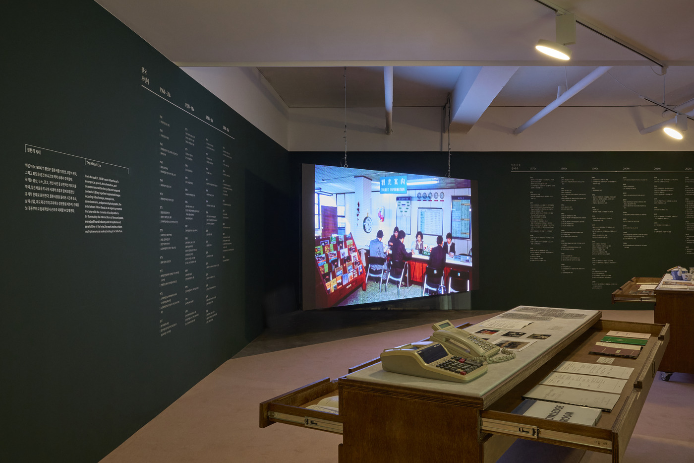 힐튼서울은 풍요로운 삶과 일상을 갈망하던 동시대인의 꿈의 공간이었고, 바로 이 지점에서 흔한 호텔을 넘어서는 특별한 장소성을 띱니다. 그렇기에 이 건축물이 고작 40년 만에 역사의 뒤안길로 사라진다는 사실이 더 아쉽게 다가오는데요. 기획자들이 전시의 한 부분을 사라지는 건축을 향한 다양한 사회 문화적 질문으로 구성한 것도 이 때문일 겁니다. CAC는 건축물의 생애 주기가 가진 의미, 그리고 수명과 보존의 이분법에 대한 질문을 던집니다. 이들은 어떤 건축물이 설사 사라진 후에도 기억, 담론, 자료의 교차 속에서 지속적으로 재구성될 수 있다는 사실을 보여줍니다.
