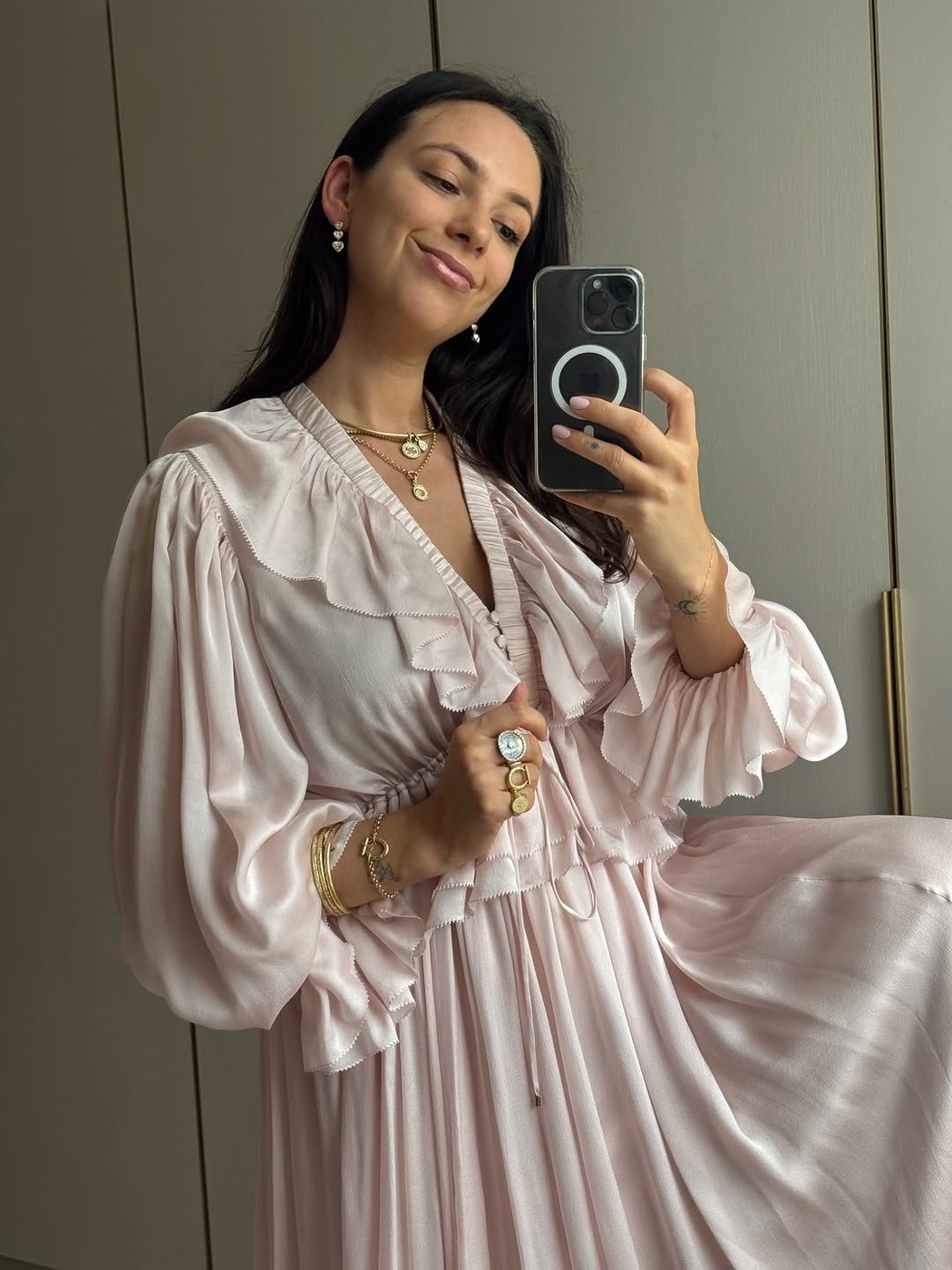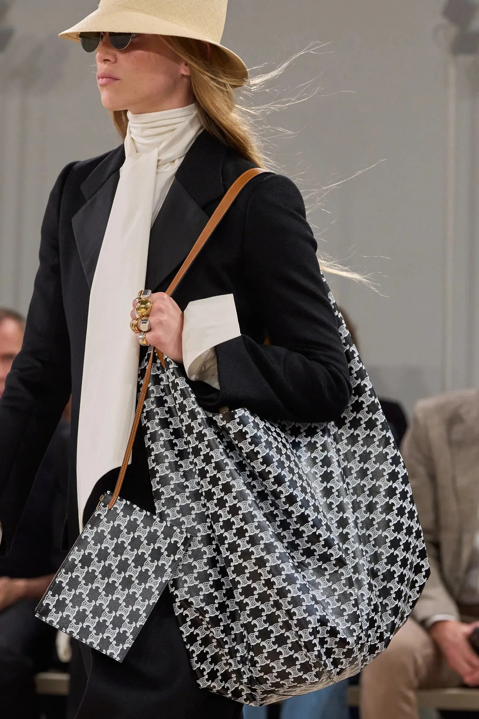핑키 링은 런웨이에서도 찾아볼 수 있습니다. 셀린느의 2026년 봄/여름 컬렉션에는 핑키 링과 겹겹이 겹친 ‘스택 스타일’ 반지가 자주 등장했거든요. 특히 골드 인장 반지는 굵은 팔찌같이 중량감 있는 주얼리 사이에서도 눈에 띄었습니다.