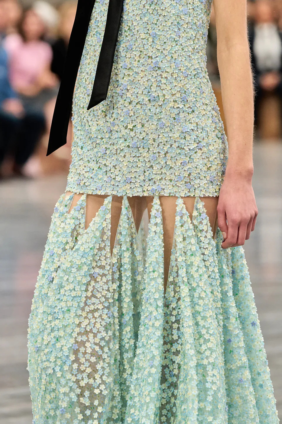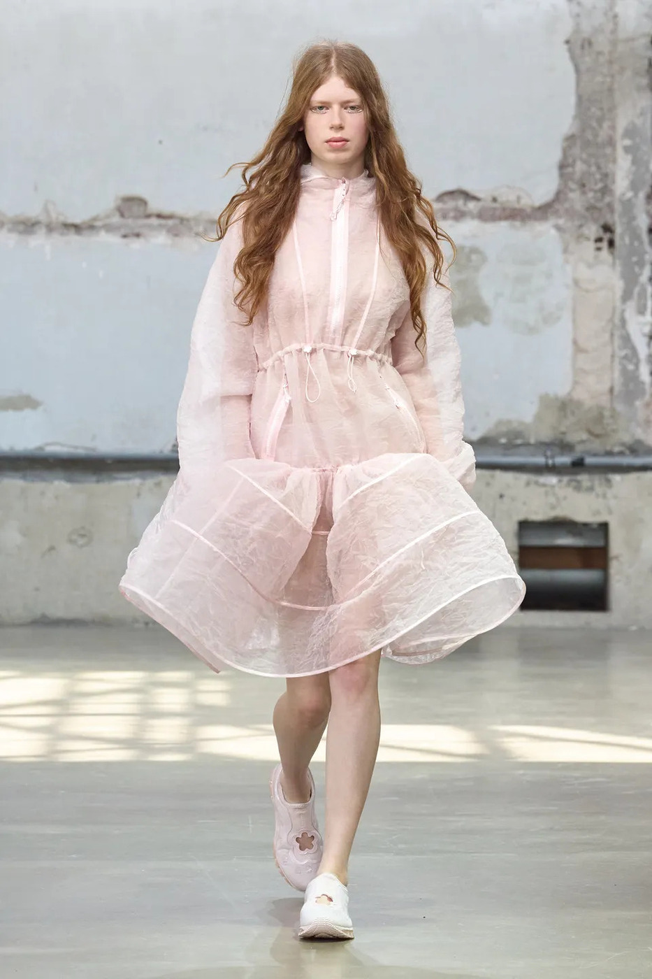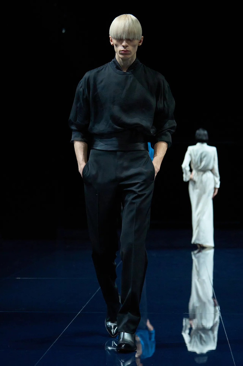 “나는 네가 헤엄칠 수 있으면 좋겠어 / 돌고래처럼, 그래, 돌고래처럼 자유롭게.” 물속의 먹먹한 윙윙거림이 데이비드 보위의 ‘Heroes’로 바뀔 때까지, 모델들은 아주 느릿한 파도처럼 무대를 향해 밀려들었습니다.