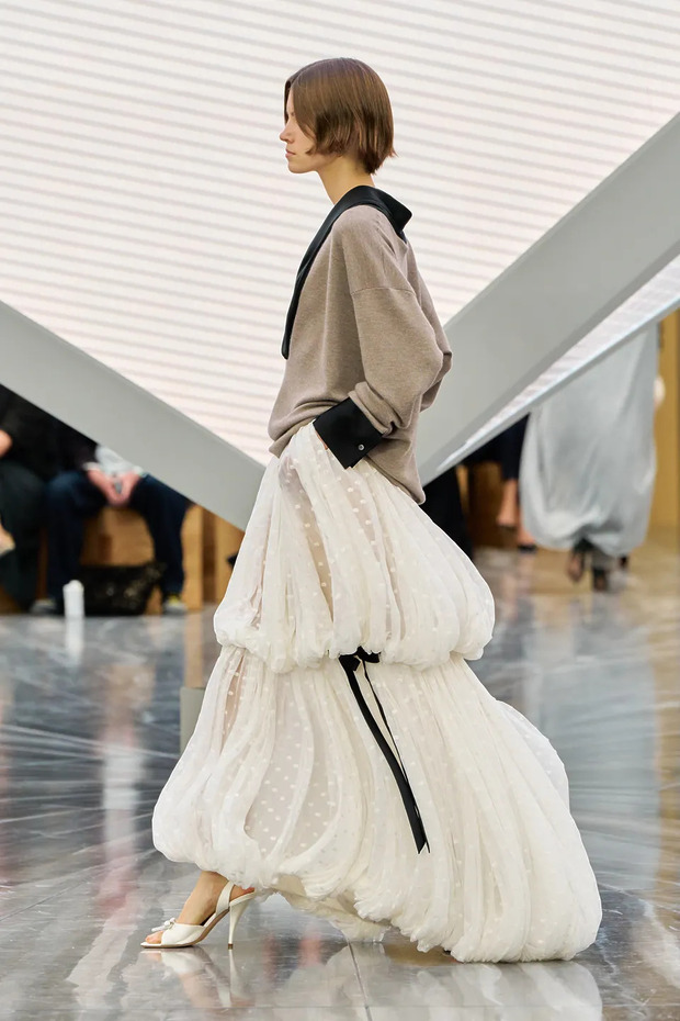 지난 시즌이 10년 역사의 정점 같았다면, 이번 컬렉션은 반복과 현상 유지 국면에 가까웠습니다. 정체성은 여전히 굳건했지만, 발전 속도는 다소 느려 보였고요. “지난 몇 달간 우리는 정말 많이 반성하고 회고했으며, 그 과정에서 ‘이제 뭘 해야 하나’라는 부담도 분명히 느꼈어요.” 쇼가 끝난 후 그녀가 털어놓은 고백처럼, 이번 무대는 망설임 끝에 내놓은 결과였죠. 기술적인 장치를 더하며 낭만을 현실로 구현한 건 분명합니다. 세실리에 반센의 팬이라면 옷장에 하나 더 들이고 싶을 만한 실루엣이 분명 있었죠. 이런 낭만은 어디까지 이어질까요? 적어도 멈추지 않고 계속 나아가는 세실리에의 행보에는 박수갈채를 보냅니다.