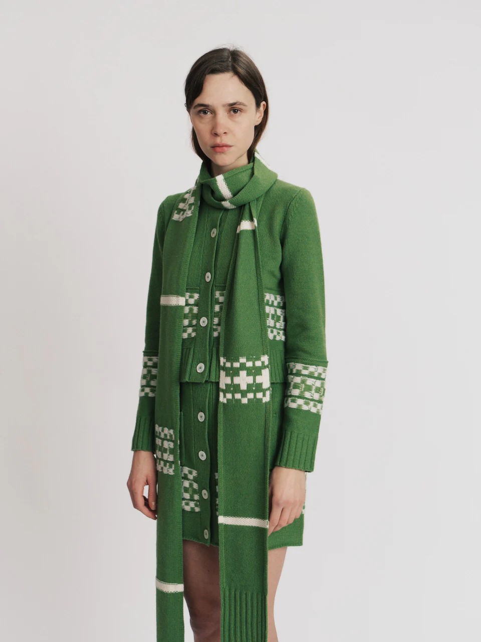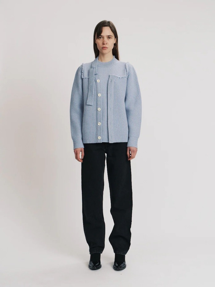 플랑드르(Flanders)의 동부 지역은 한때 전원적인 풍경을 그린 라템파(Latemse School)의 고향이었습니다. 하지만 로게의 영감과 영향력은 플랑드르, 나아가 벨기에를 훨씬 넘어서죠. 그녀는 아이템에 영국이나 미국의 예술가 이름을 붙임으로써 그들의 창의적인 유산을 이어갑니다. 오래 입을 수 있는 아이템은 모두 천연섬유로 만들었고요. 미국 사진가 신디 셔먼이 떠오르는 크루넥 카디건 ‘셔먼’은 스웨터를 즐겨 입는 소녀를 연상시킵니다. 반소매 스웨터는 트레이시 에민에 영감을 받아 ‘에민’이라 부르고, 흩날리는 실로 만든 체크 패턴의 ‘라일리’는 브리짓 라일리에서 따왔죠. 트롱프뢰유 효과로 겹쳐 입은 듯한 해체주의적인 울 베스트 ‘보위’는 데이비드 보위를 향한 헌사고요.
