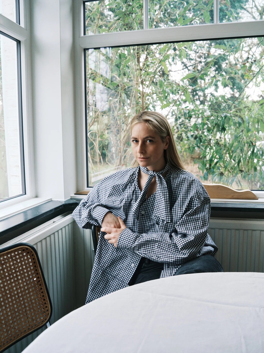 코튼 포인텔 탱크 톱과 스커트는 막내아들의 우주복에서 영감을 받았으며, 일부 아이템은 미니 버전으로도 출시됩니다. 편안함과 따뜻함에 중점을 둔 디자인은 벨기에 출신 디자이너의 현실적인 니즈, 삶의 필요에서 비롯되었습니다. 로게는 늘 “조금씩은 세상과 동떨어진 환경에서 일하고 싶었다”고 말하는데요, 현재 헨트(Ghent) 인근의 데인저(Deinze)에 살고 있습니다. 창을 열면 말이 풀을 뜯는 넓은 들판이 보이는 붉은 기와지붕의 석조 주택을 작업실로 삼았죠.