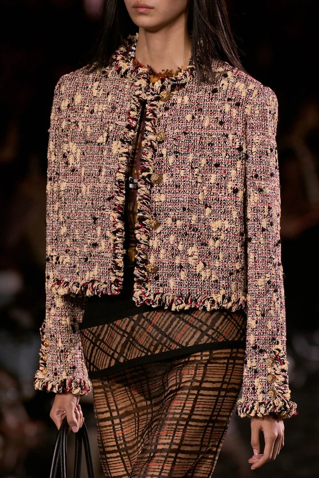 마티유는 보이 카펠(Boy Capel)의 옷장을 차용해 실용적인 남성의 테일러링을 자기 방식으로 재해석했던 그 옛날 코코 샤넬 방식에 주목했습니다. 쇼 오프닝을 장식한 크롭트 수트는 마티유가 입었던 재킷을 바탕으로 허리 부분을 자르고 단추를 수선한 것이었죠. 이건 코코 샤넬이 여성에게 자유를 선사하던 방식 그대로를 따르겠다는 마티유 블라지의 선서와 다름없습니다. 자신의 것을 더하더라도 마음만은 변치 않겠다는 다짐으로 해석하겠습니다. 그래서 눈에 띈 것은 트위드에 가져온 혁신입니다. 그는 해체를 통해 가볍고 신선한 트위드를 만들어냈죠. “비스코스를 사용했어요. 원단에 생동감을 주고, 수트가 훨씬 경쾌해집니다.” 정체성은 유지하되 더 가볍고 활동하기 좋은 옷을 만드는 거죠.