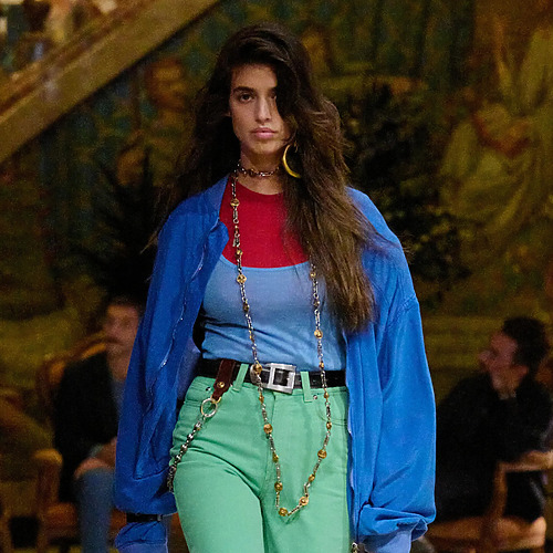 수트 팬츠 같은 하이웨이스트 와이드 실루엣에 크롭트 가죽 봄버 재킷을 걸치면 신선한 파워 드레싱이 가능합니다. 볼드한 액세서리를 더해도 전혀 과하게 느껴지지 않아요.