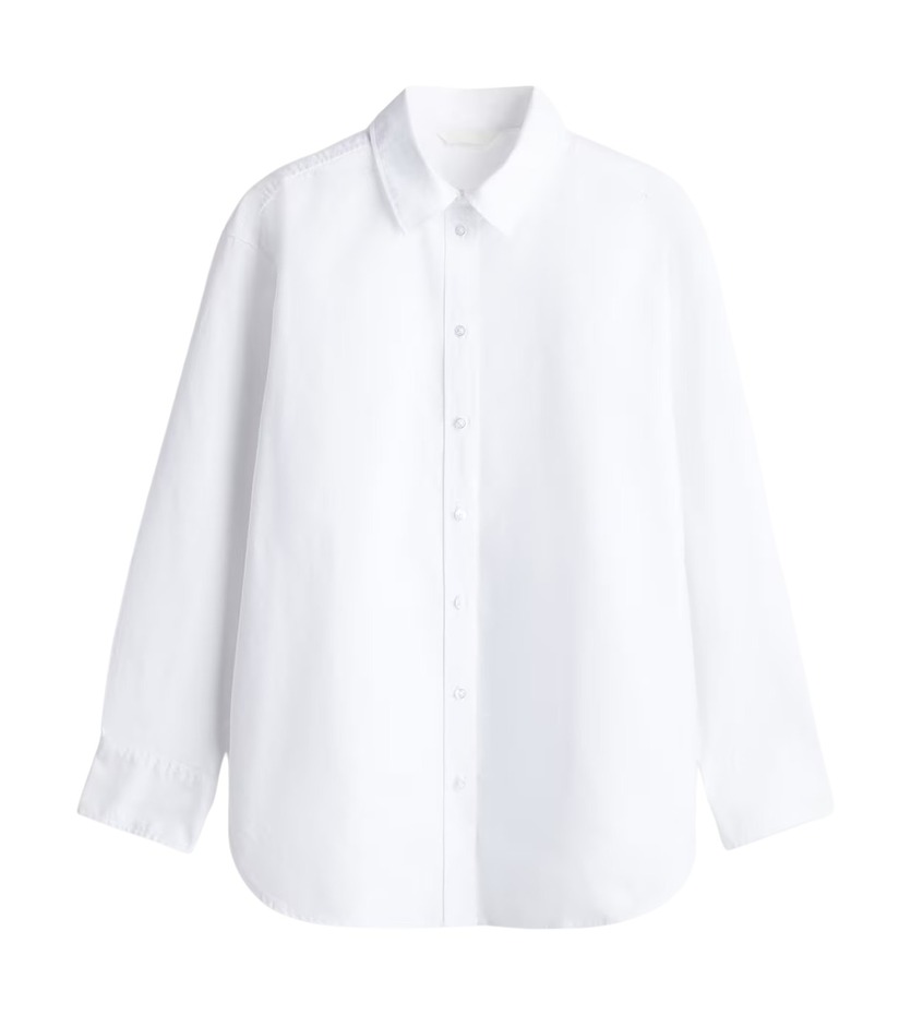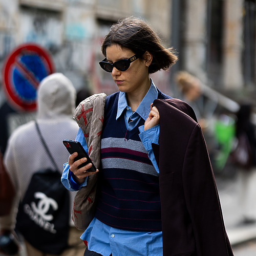 브이넥 니트 위로 튀어나온 셔츠 깃이 이토록 스타일리시해 보인다니요! 1990년대 뉴요커 같은 여유롭고 편안한 도시 분위기를 내는 데 꼭 필요한 레이어링 기술이죠.