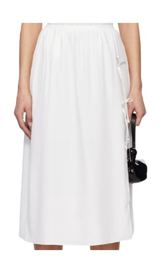 시몬 로샤화이트 리본 컬럼 미디 스커트