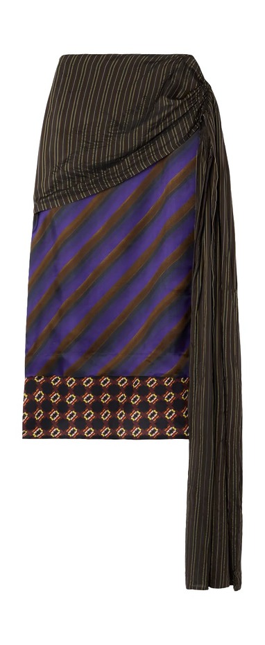 드리스 반 노튼개더 패널 스트라이프 프린트 트윌 미디 스커트