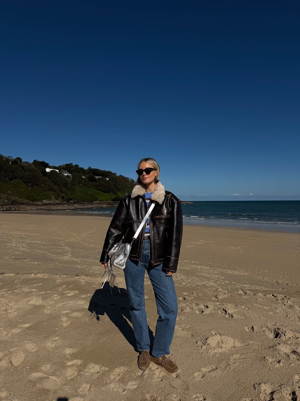 색감에서 묵직하고 빈티지한 분위기를 풍기는 브라운 레더 재킷은 의외로 캐주얼한 일상에 잘 녹아듭니다. 가장 좋아하는 청바지와 니트 톱, 모카신만 준비하세요. 힘이 잔뜩 들어간 것 같은 레더 재킷에 느슨한 애티튜드를 추가하는 거예요. 양털 트리밍이 가미된 브라운 가죽 재킷이라면 겨울까지 입어도 무방합니다.