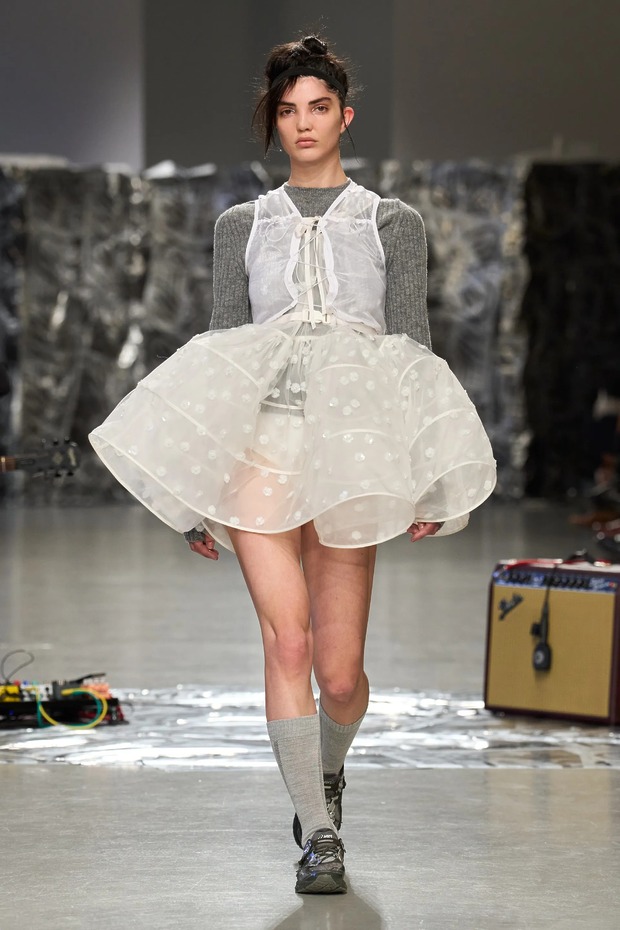 런던에서 트렌디한 디자이너로 꼽히는 세실리에 반센은 그레이 니트를 컬렉션의 주요 테마로 선정했죠. 브랜드 시그니처인 가벼운 드레스 안에 청키한 그레이 니트를 매치해, 그레이가 지닌 부드러운 볼륨감을 강조했습니다. 그레이 특유의 쿨한 감성은 스텔라 맥카트니가 후드 달린 진한 그레이 골지 카디건으로 증명했죠. 빅토리아 베컴은 스톤 그레이 스웨트 드레스로 미니멀한 우아함을 표현했고요. 미우미우는 오묘하게 빛나는 그레이 니트에 초록색 반짝이 팬츠로 티셔츠 대신 얇은 그레이 니트의 유행을 끌어냈습니다.