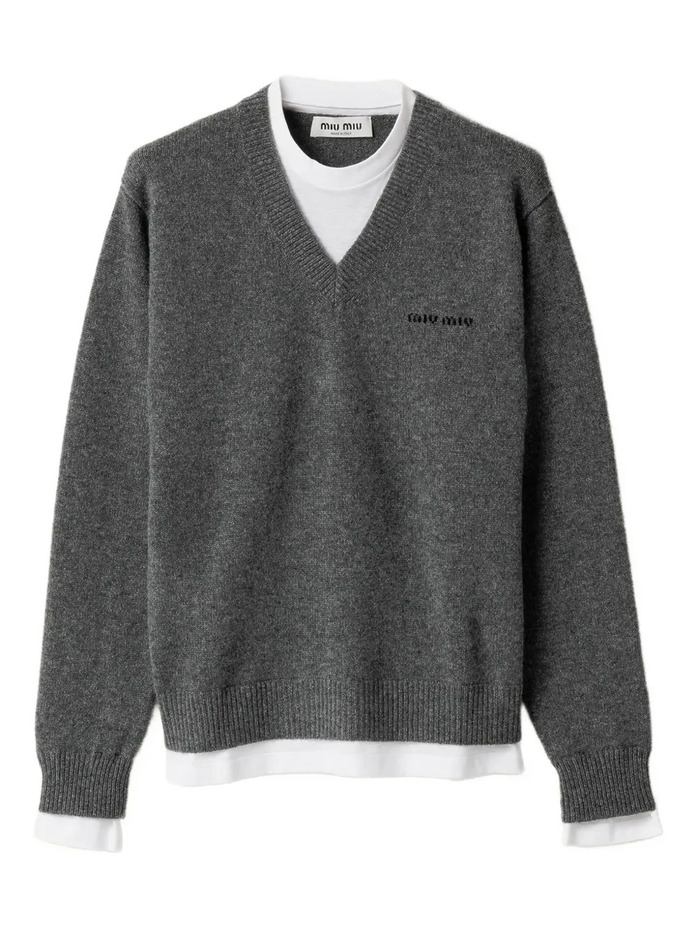 미우미우인타르시아 로고 V넥 스웨터