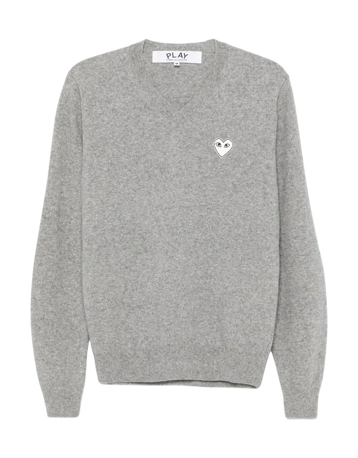 꼼데가르송 플레이화이트 로고 하트 V-넥 스웨터