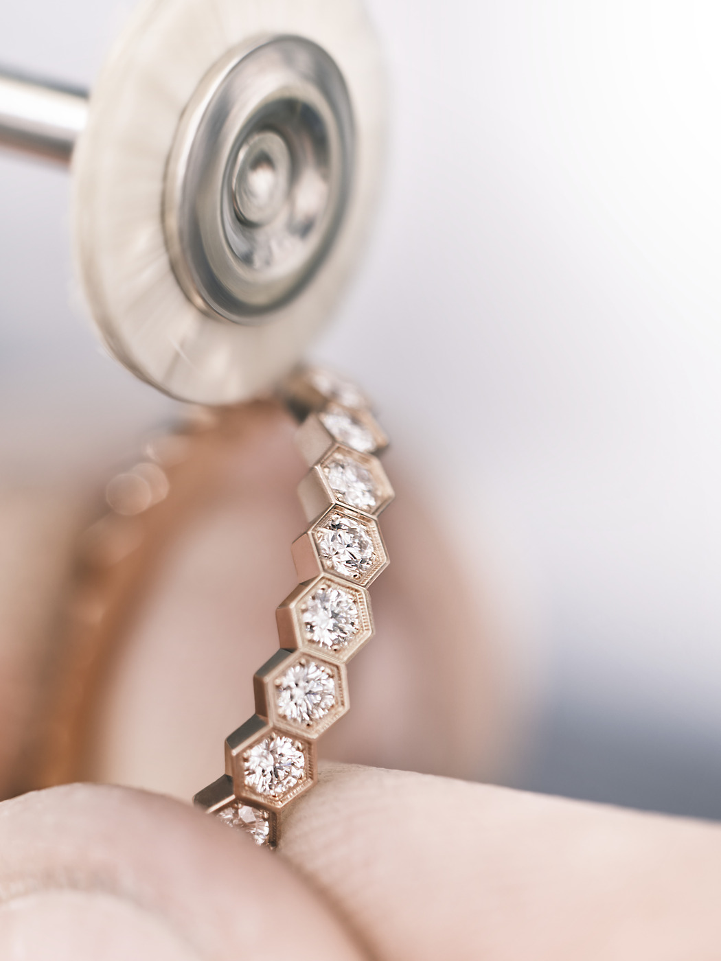 빛을 머금은 허니콤, 영원을 상징하는 꿀벌. ‘비 드 쇼메’ 컬렉션은 역사를 담은 주얼리를 넘어 윤리적인 미래를 위한 메종의 선언이다.