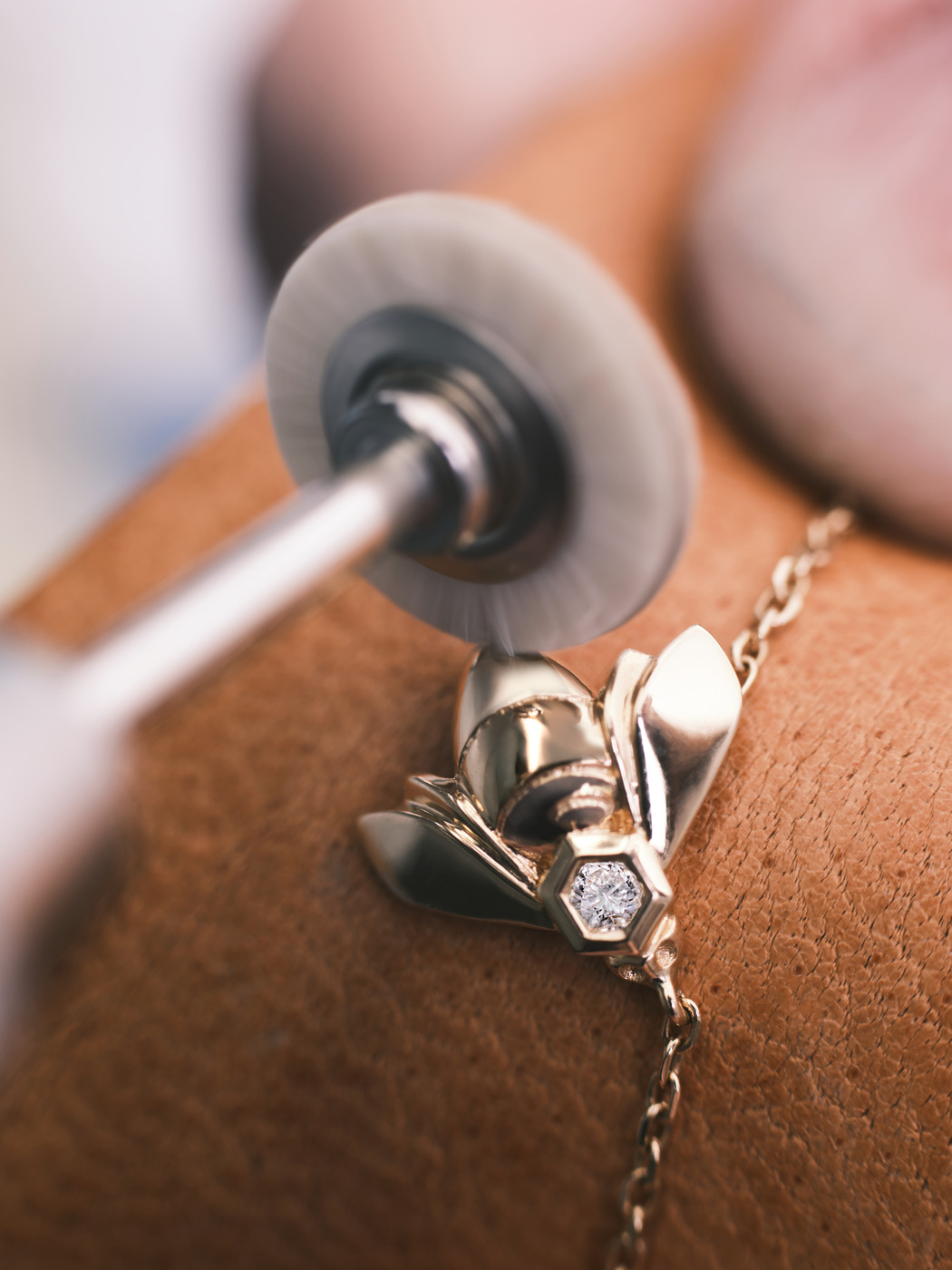 쇼메가 얼마 전 선보인 ‘비 드 쇼메’ 펜던트는 메종의 상징 벌을 담는 동시에, 모든 컬렉션에 100% 추적 가능한 금을 도입하는 출발점이 된다. 펜던트를 구성하는 체인과 잠금장치까지 모든 요소를 책임 있는 출처에서 온 금으로 세공하며, 채굴 단계부터 완성에 이르기까지 1g 단위로 검증한다. 이 금은 단순한 귀금속이 아니라 쇼메가 제시하는 ‘윤리적 아름다움’의 증거다.