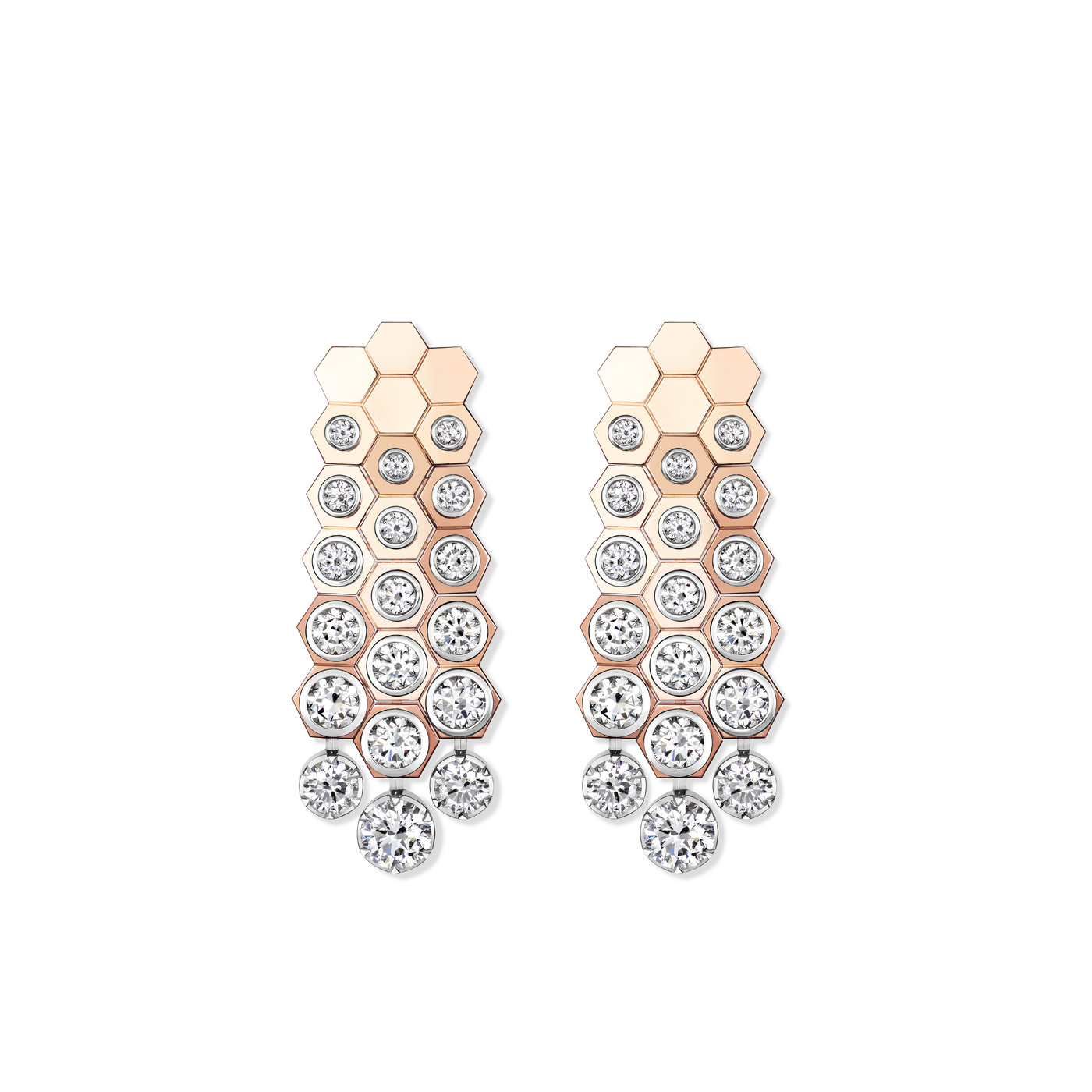 ‘비 드 쇼메’의 정교하게 세공된 골드 미러 폴리싱 허니콤 모티브와 벌은 그 자체로 상징적이고 자연주의적인 입체 작품이다. 로즈·옐로·화이트 골드에 세팅된 다이아몬드는 빛을 포착하고 발산하며, 무한히 이어지는 육각 셀은 벌집처럼 연결과 확장의 미학을 구현한다. 매끄러운 스태킹과 유연한 조합은 이 주얼리를 선택한 이에게 자신만의 이야기를 완성할 자유를 건네는 듯하다.
