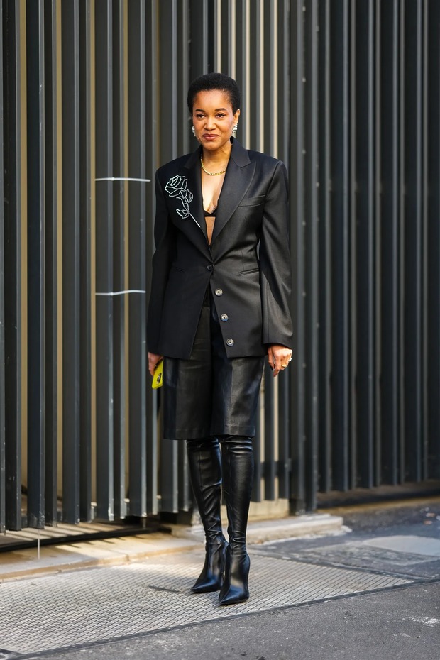 스트리트에서도 힌트가 쏟아져 나왔어요. 이리나 샤크는 슬라우치 가죽 부츠에 블랙 데님 쇼츠를 입어준 뒤 오버사이즈 블랙 코트로 시크한 뉴욕 여성의 면모를 뽐냈죠. 가브리엘라 카레파 존슨(Gabriella Karefa-Johnson)처럼 좀 더 캐주얼한 접근도 가능합니다. 폴로 톱에 데님 버뮤다 팬츠를 착용한 뒤 앞코가 뾰족한 니하이 부츠를 매치하고 반다나를 머리에 둘러주면 요즘 같은 가을 날씨에 주말 룩으로 딱이죠.