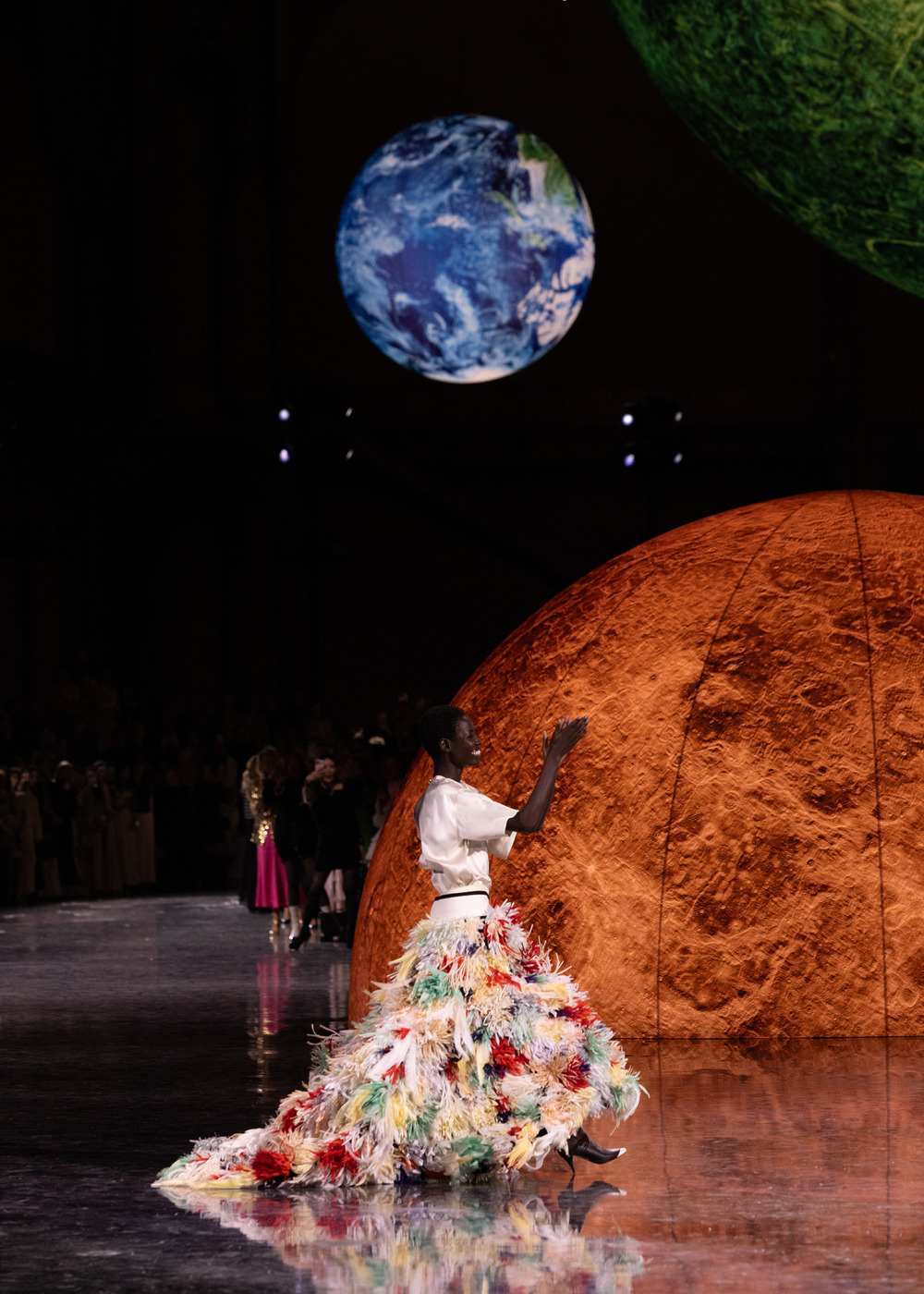 오랜 기다림 끝에 드디어 그 순간이 도래했다. 10개월의 준비 기간과 14개 브랜드의 2026 봄/여름 데뷔 컬렉션 공개 후, 마침내 마티유 블라지(Matthieu Blazy)의 첫 샤넬 컬렉션이 모습을 드러낸 것이다. 쇼 시작 시간인 저녁 8시를 조금 넘긴 시각, 거의 모든 사람이 자리에 착석했고 머리 위로는 하나의 태양계를 구성할 만한 규모의 행성이 빛나고 있었다. 칼 라거펠트가 수없이 많은 샤넬 컬렉션을 선보인 그랑 팔레는 이제 블라지가 크게 도약할 거대한 무대이자 시각적인 상징이 되었다. 115년 전 코코 샤넬이 설립한 하우스의 수장 자리를 채운 네 번째 디자이너로서 말이다. 기대가 컸다는 말로도 부족했지만, 41세의 벨기에 출신 프랑스계 디자이너가 기대 이상이었다는 표현 또한 충분치 않았다. 블라지의 첫 샤넬 컬렉션은 이번 시즌 가장 강렬한 데뷔 쇼였다. 자신감 있고, 동시대적이며, 밀라노와 파리의 유서 깊은 전통을 계승하는 컬렉션이 거의 해내지 못한 방식으로 캐주얼했다. 그렇다고 해서 하우스의 본질과도 같은 정교함과 노하우를 포기한 것도 아니었다.