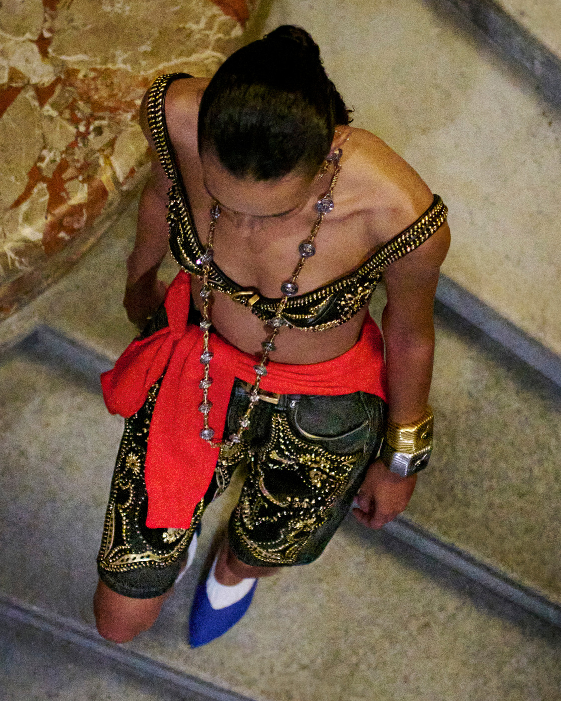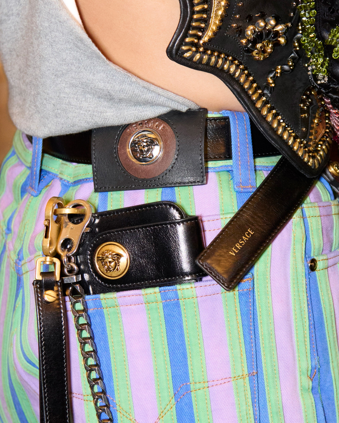 자기 확신이 없는 디자이너라면 이 모든 상황에 위축될 수 있겠지만, 42세의 비탈레는 자신감이 넘쳤다. 그의 첫 컬렉션은 대담했고, 베르사체의 정체성을 근본적으로 재정립하려는 시도는 거침이 없었다. 비유하면, ‘신들의 세계’에 머물던 브랜드를 일상의 영역으로 끌어내린 것이다. 그는 이렇게 말했다. “신화는 신들이 자기들끼리 사랑에 빠지는 데 지루함을 느끼고 인간 세상으로 내려오면서 시작된 거예요. 그러니까, 바닥에 끌리는 이브닝 드레스에 대한 이야기가 아니죠(실제로 이번 컬렉션에는 이브닝 드레스가 단 한 벌도 등장하지 않았다).” 그는 또 이렇게 덧붙였다. “좀 더 현실적으로 만들고 싶었습니다. 제 주변에는 자수 장식 가죽 베스트를 입고 싶어 하는 친구가 아주 많아요. 멧 갈라에 가기 위해서가 아니라 디스코 클럽에 가기 위해서죠.”