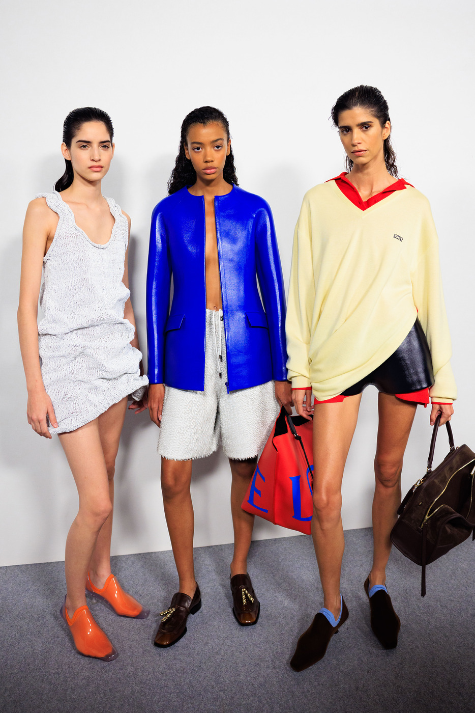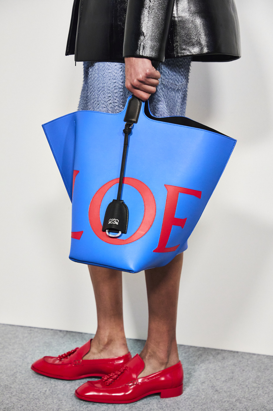이번 시즌을 정의하는 백 형태는 스웨이드와 가죽 또는 악어가죽 소재에 손잡이가 하나 달린 아마조나 백이었다. 노트북을 넣을 만큼 넉넉하면서도 지하철역으로 뛰어가는 모습이 연상되는 축 처지는 느낌이 있었다. 그들을 뉴욕에서 데려올 수는 있었지만, 그들에게서 뉴욕을 지울 순 없었다. 그들이 데뷔 쇼에서 보여준 활기는 새로운 로에베의 가장 큰 매력 포인트였다. VK