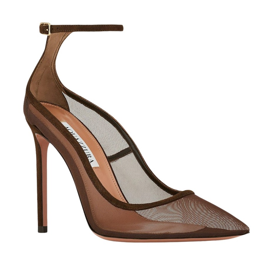 여기에 루이 비통 모노그램 숄더백, 가렛라이트의 브라운 선글라스로 안전하게 스타일링을 마무리하는가 싶었지만, 슈즈에서 정석을 비껴갔죠. 앵클 스트랩으로 여미는 뾰족한 앞코의 펌프스를 선택했는데, 10.5cm의 아주 얇은 굽은 보기만 해도 아찔했고, 메시 소재로 만들어 섹시한 무드가 흘러넘쳤습니다. 모험심 넘치는 벨라 백스터에 제격이었달까요?