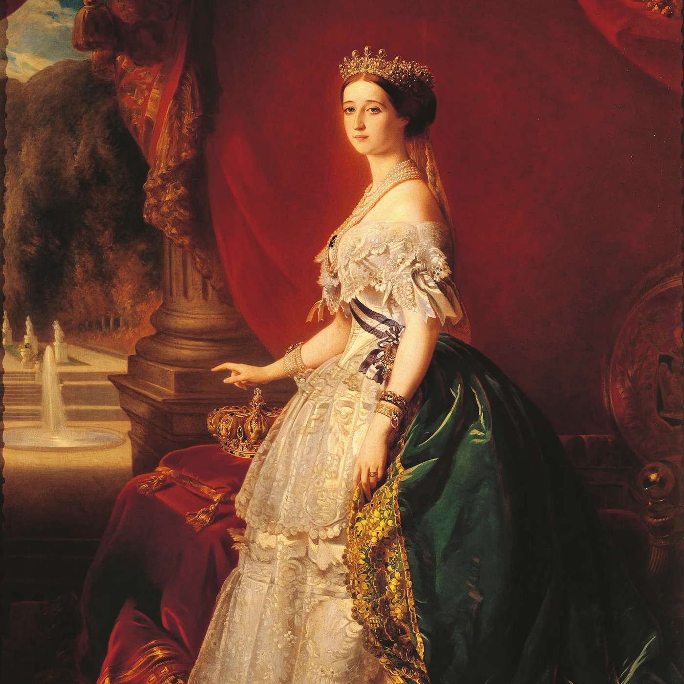 외제니 황후, 즉 외제니 드 몽티조는 나폴레옹 3세의 아내이자 보나파르트(Bonaparte) 왕조의 패션을 주도하고, 영국의 선구적인 꾸뛰리에인 찰스 프레데릭 워스(Charles Frederick Worth)와 협업해 패션 역사의 흐름을 바꾼 인물이었습니다. 웅장하고 파격적인 취향을 지닌 것으로도 유명하죠. 패션 저널리스트이자 비평가인 알렉산더 퓨리(Alexander Fury)는 외제니가 ‘엠프레스 블루(Empress Blue)’를 세상에 소개했을 뿐 아니라 루이 비통 트렁크의 대중화에도 기여했다고 평가했습니다.