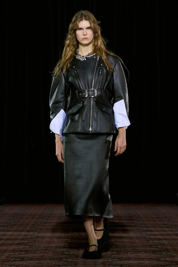 스트리트에서 이를 따르고 싶다면, 올가을에는 슬립 스커트나 와이드 코듀로이 팬츠에 매치하는 것이 제격이고요. 트렌드 헌터인 헤일리 비버의 룩을 참고하세요. 헤일리는 키튼 힐을 신고 실크 미디스커트에 블랙 레더 재킷을 블라우스처럼 매치한 뒤 허리를 꽉 졸라맸습니다. 피비 파일로의 레더 재킷을 미니 드레스처럼 입었고요.