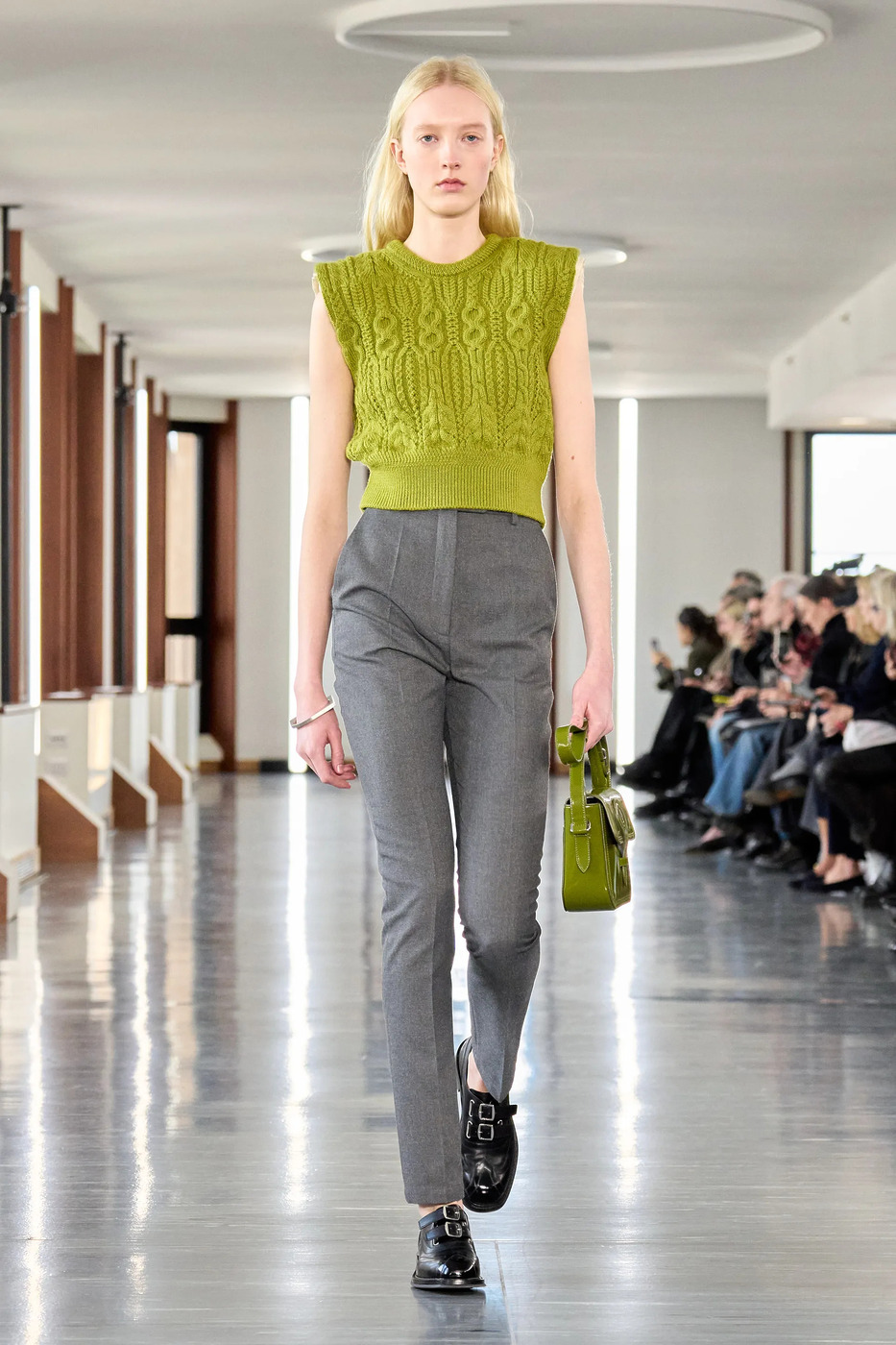 캘빈 클라인은 이번 시즌 새로운 ‘워킹 우먼’ 스타일을 제안했습니다. 1980년대 생 로랑식 ‘파워 우먼 룩’에 도전장을 내민 셈이죠. 가능한 한 미니멀하게 비즈니스 스타일을 표현하는 것이 이번 시즌 캘빈 클라인의 철학입니다. 미디 스커트와 베이지색 개버딘 코트 등 기본적인 비즈니스 룩 아이템에 옥스퍼드 슈즈로 포인트를 주는 게 핵심이죠. 함께 신은 옥스퍼드 슈즈는 고전적인 스퀘어 토 디자인에 무광 블랙 컬러로, 미디 스커트는 물론 팬츠에도 잘 어울릴 듯합니다.