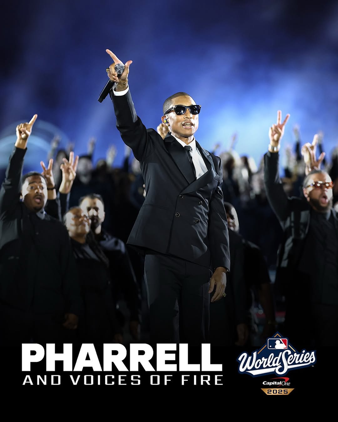 이번 프리 게임 쇼는 MLB와 에미상 수상 제작자 제시 콜린스가 함께 새로운 형식으로 꾸밉니다. 퍼렐과 가스펠 합창단 보이스 오브 파이어(Voices of Fire)가 함께 무대를 선보이는데요. 퍼렐은 보이스 오브 파이어의 새 앨범 <Ophanim>의 수록곡 ‘Are You Ready?’와 ‘The One’을 함께 공연할 예정입니다. 세계적인 스포츠인 야구를 통해 화합과 단결이라는 주제를 다룹니다.