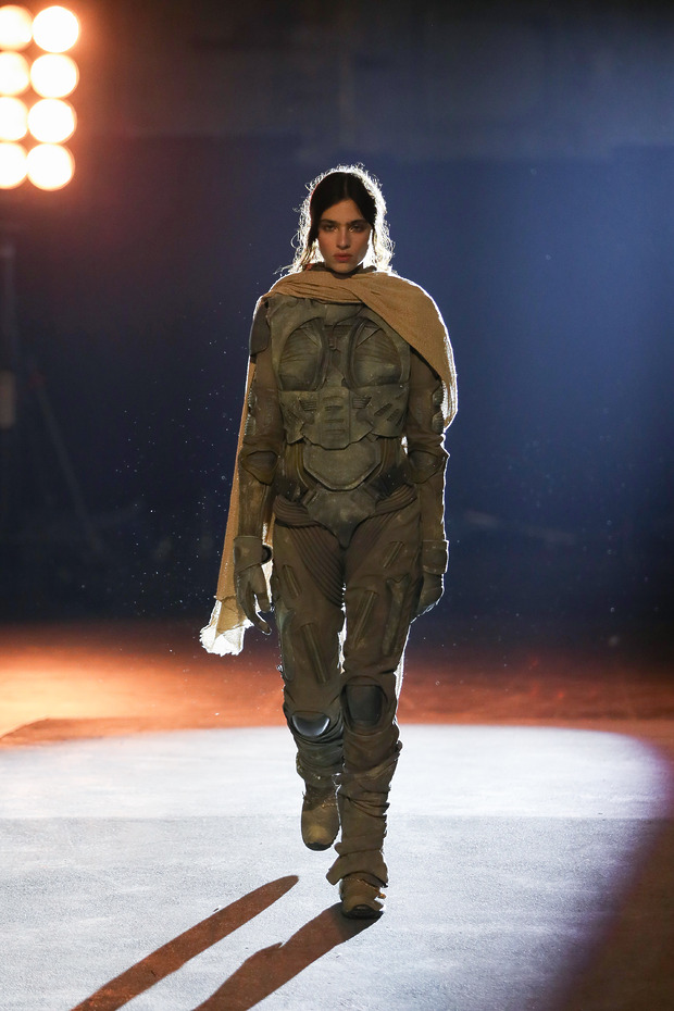제7막의 주제는 ‘새로운 세계’였습니다. 피터 뮐리에와 재클린 웨스트(Jacqueline West)는 <듄> 시리즈와 영화 <레버넌트: 죽음에서 돌아온 자>에 쓰였던 의상을 활용해 공상 과학과 현실 사이를 오갔죠. 이날의 대미를 장식한 것은 알라이아, 마크 제이콥스, 그리고 메종 마르지엘라의 아티저널 컬렉션 룩 등 무한한 창의성을 바탕으로 완성된 룩이었습니다.
