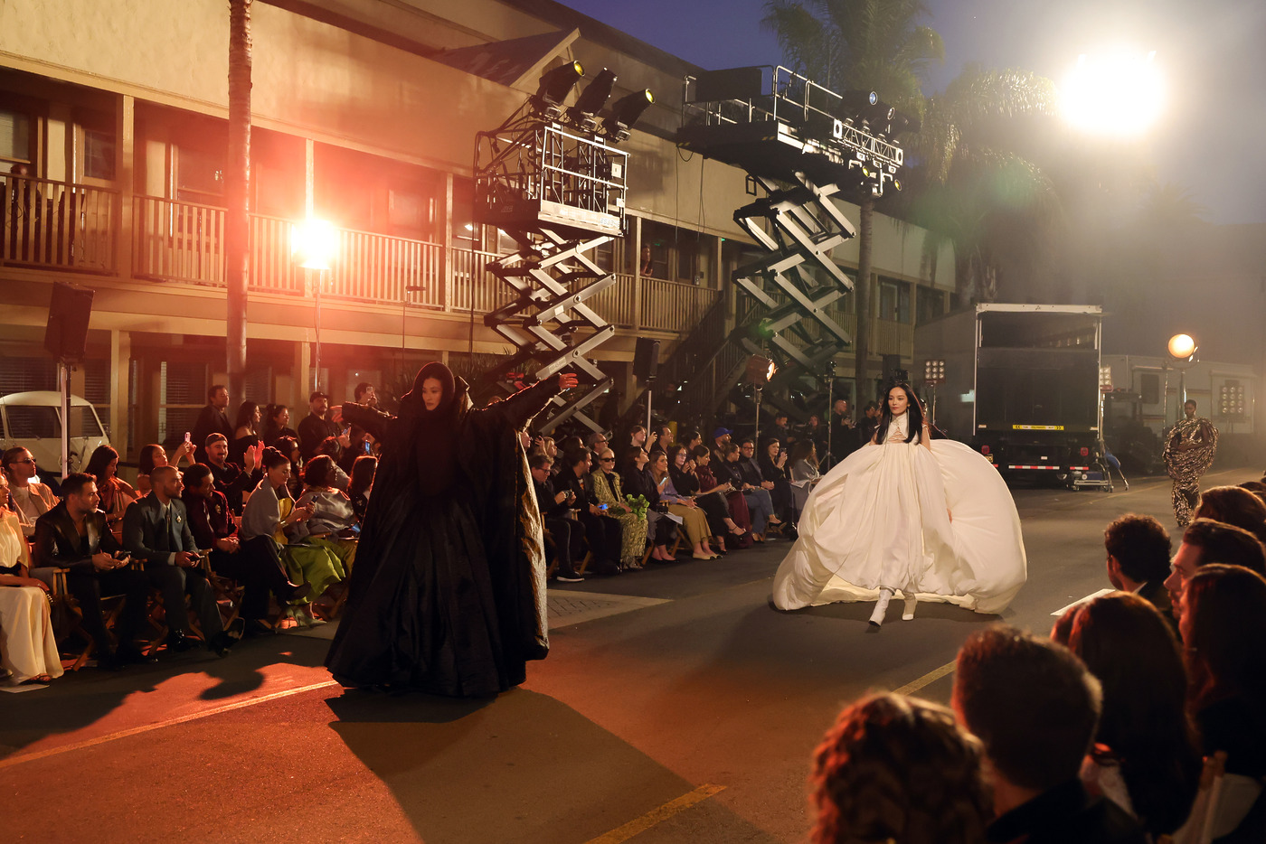 제1막은 1920년대부터 1960년대까지, 즉 할리우드의 ‘골든 에이지’라고도 불리는 그 시기에 대한 헌사였습니다. 캐서린 마틴(Catherine Martin)과 미우치아 프라다가 의기투합했죠(둘은 최근 캡슐 컬렉션을 선보인 바 있습니다.) 니콜 키드먼과 바즈 루어만의 퍼포먼스는 한 편의 흑백영화를 연상시켰고, 오프닝 모델이었던 켄달 제너는 2001년 작 <물랑 루즈>를 오마주했죠. 이후 등장한 ‘플래퍼 스타일’의 룩들은 화려한 동시에 낭만적인 모습이었습니다.